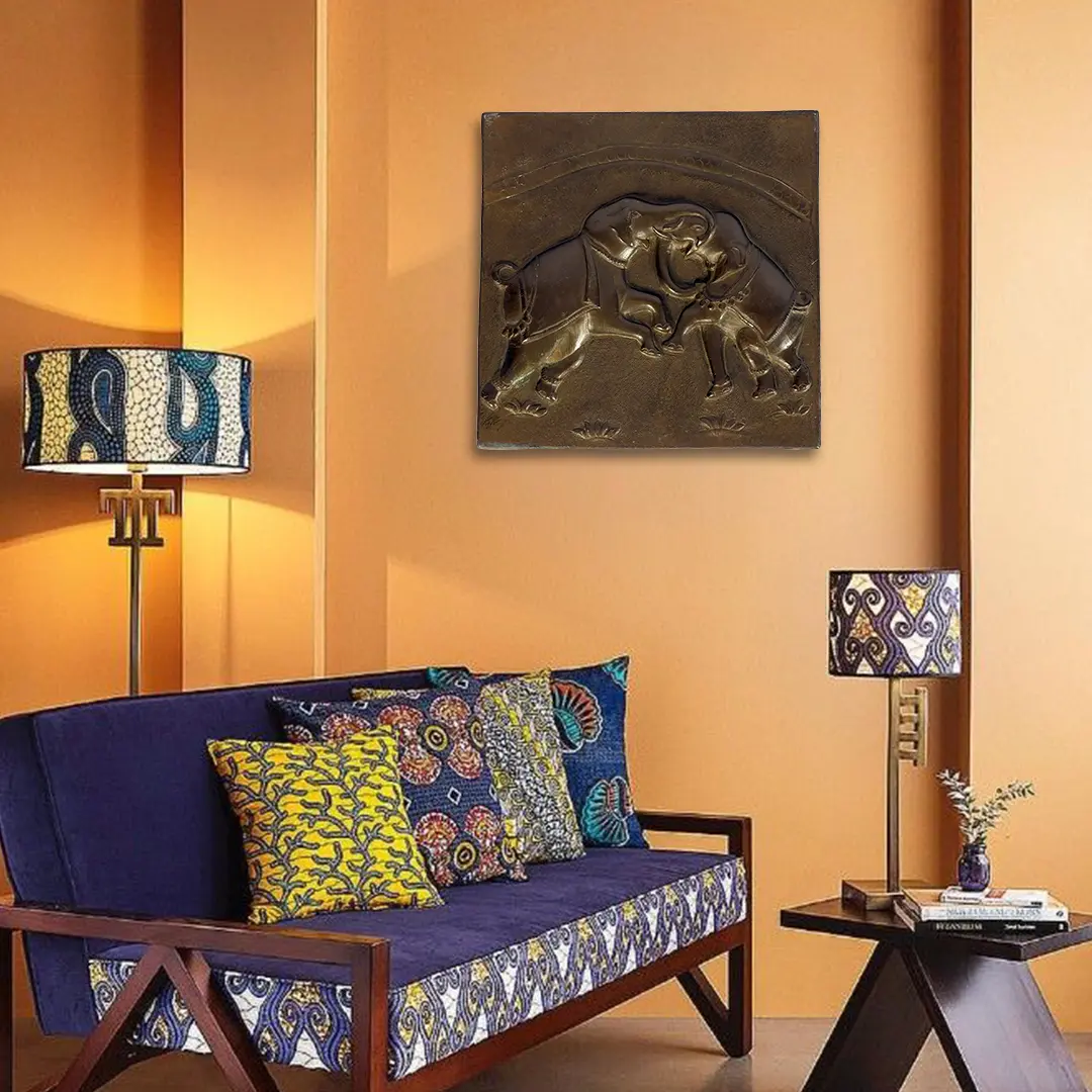 Featuring the magnificent bronze sculpture Two Fighting Elephants—an amazing representation of power, grandeur, and primitive instinct. This sculpture, which depicts the dramatic conflict between two majestic elephants, was painstakingly crafted. The elephants are fighting fiercely for control, and they radiate raw energy and intensity from their towering tusks, elevated trunks, and forceful attitudes. These remarkable animals are magnificently rendered, displaying every feature, including the fine lines of their skin and the feel of their tusks.