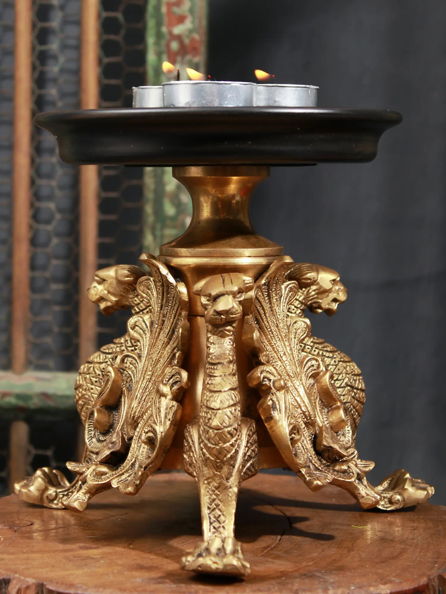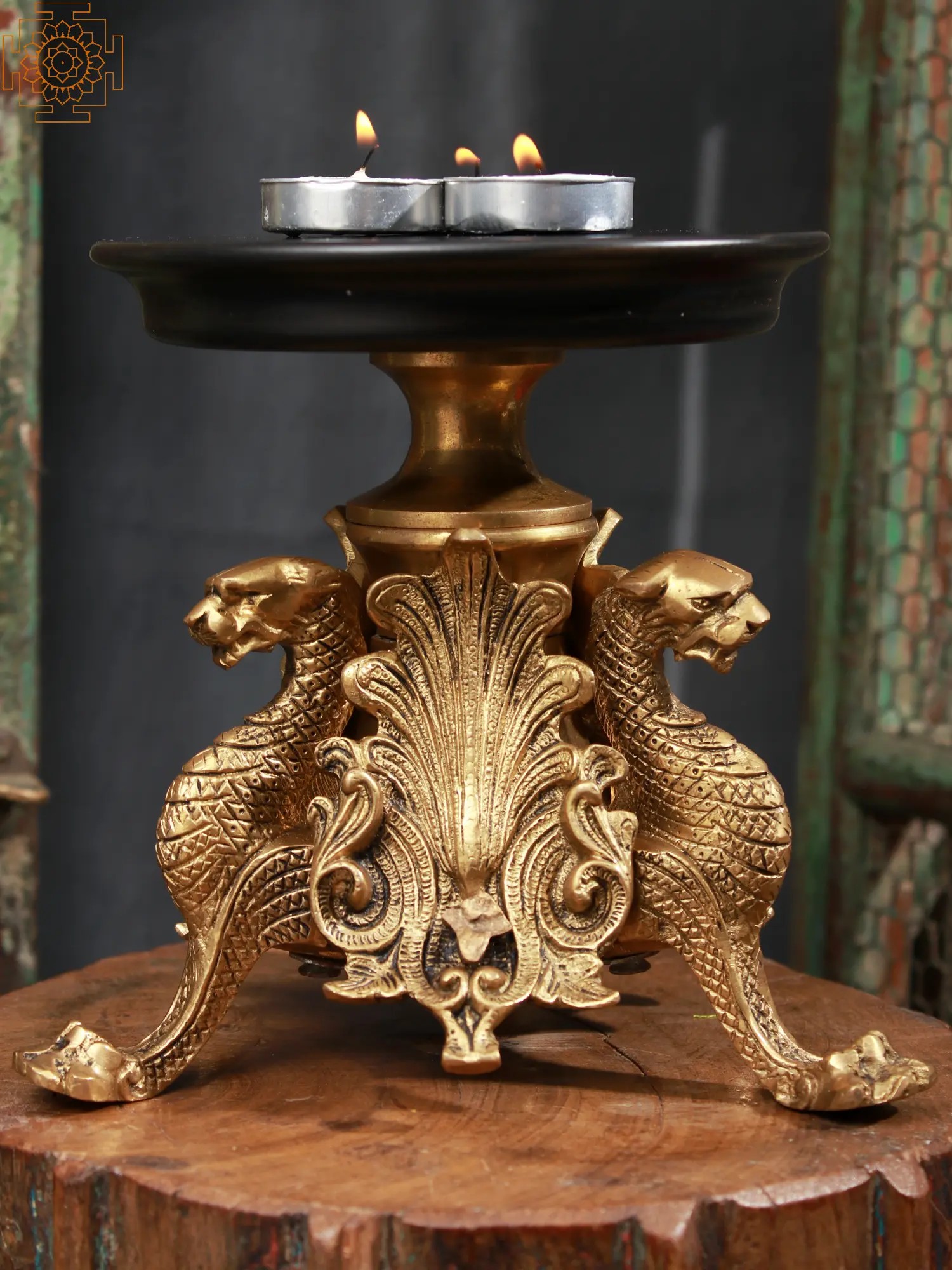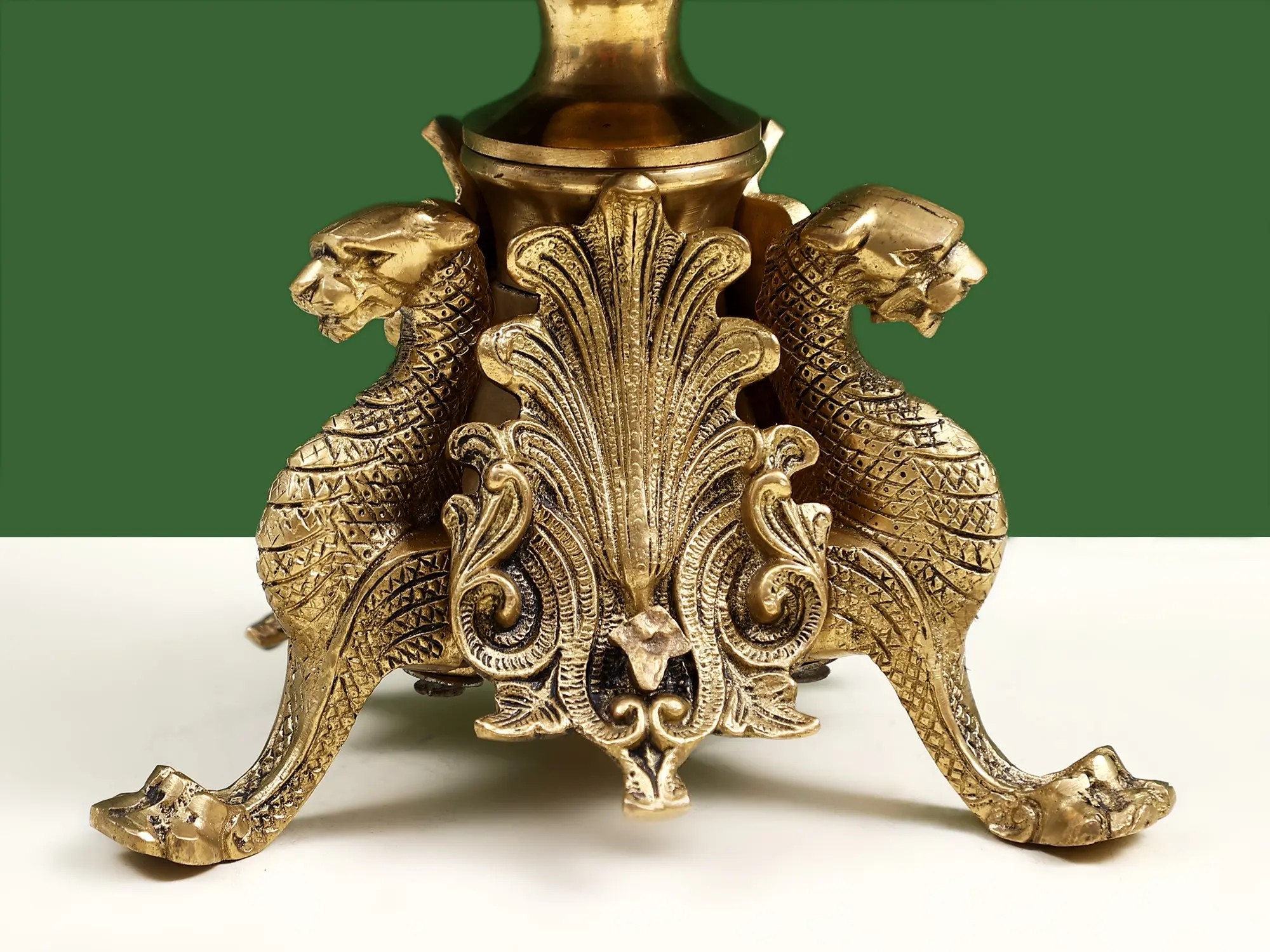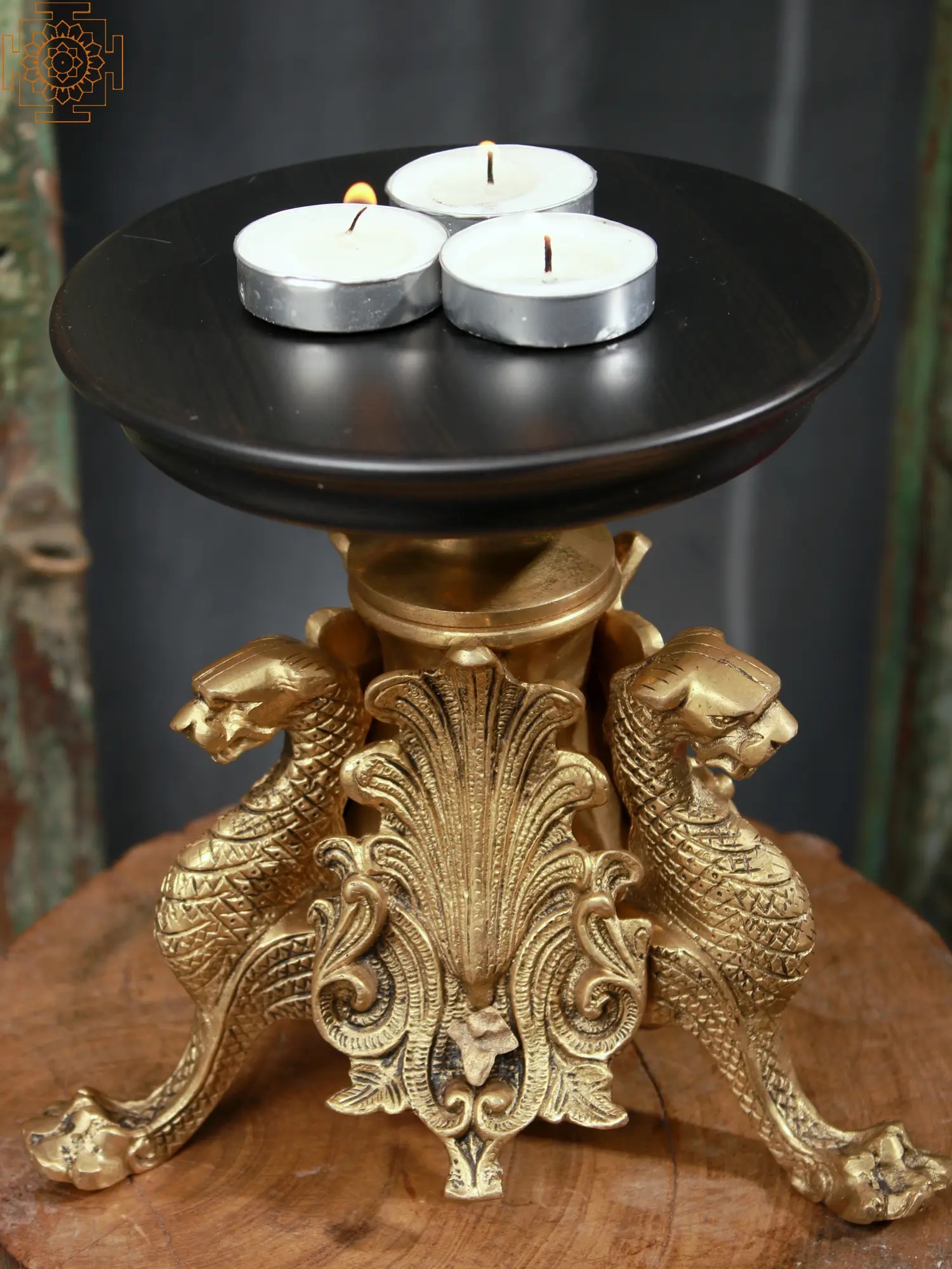 This art-piece, adorned with intricately carved dragons, adds an aura of enchantment to any space. Crafted from high-quality wood and brass, this candle stand seamlessly blends elegance with durability. Its dual-material construction ensures longevity, while the dragon motif symbolizes strength, power, and good fortune. Illuminate your surroundings with the gentle glow of the candles, casting mesmerizing shadows that dance with the dragons. Perfect for creating an ambiance of magic and sophistication, this candle stand is not just a decor item in fact it is a statement piece that infuses your space with mythical charm. Enrich your surroundings with this spectacular creation - where craftsmanship meets legend.