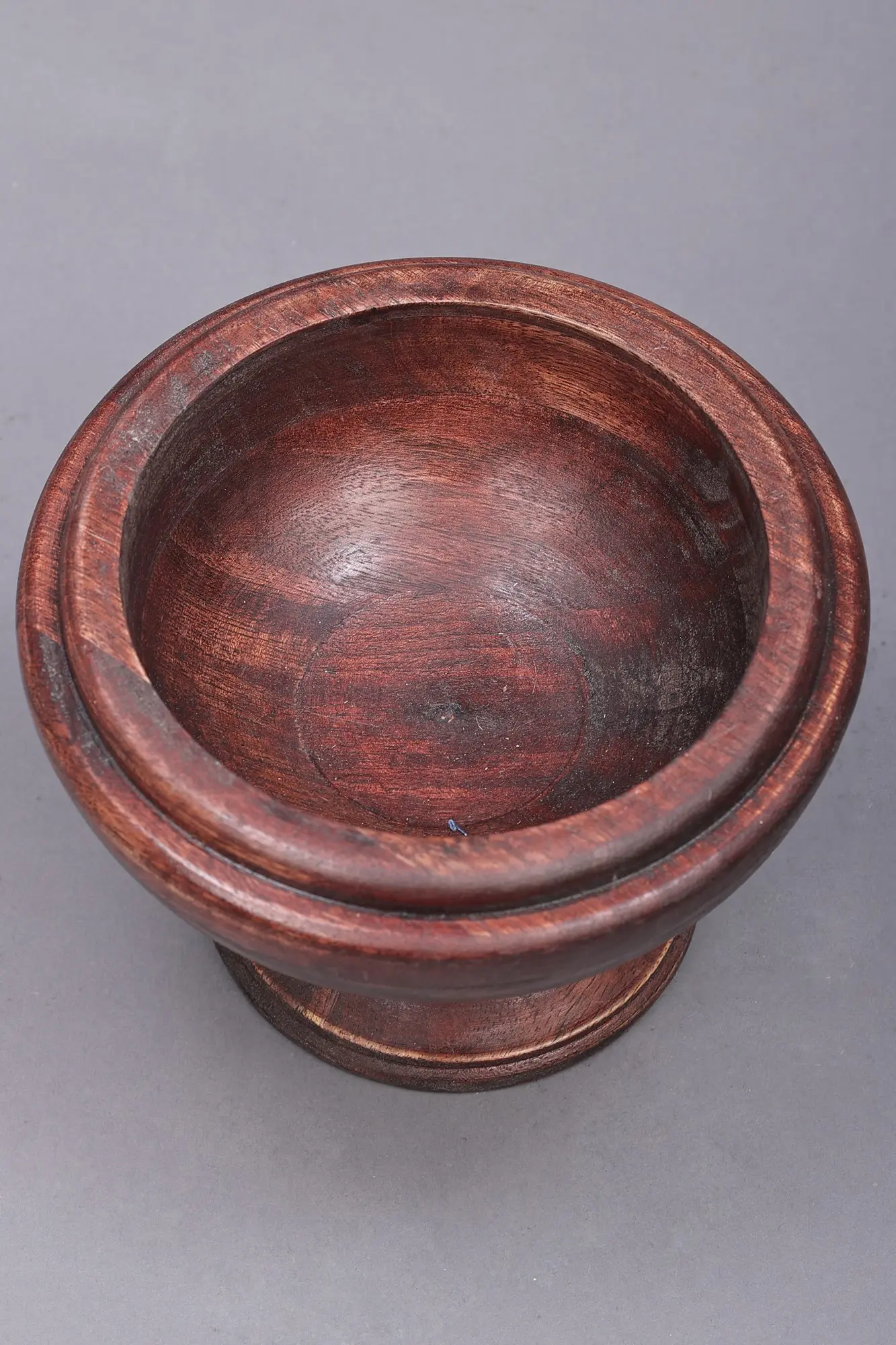 Simple things are often the most attractive. This wooden bowl in Mango wood is the finest example of the above statement. Embrace the allure of simplicity and elegance with this Wooden Bowl, a small goblet crafted from Mango Wood. The design, reminiscent of classic craftsmanship, encompasses a base, a stem, a bowl, and a rim, forming a harmonious blend of form and function. The dark brown wooden finish bestows an air of sophistication, transforming the bowl into a culinary canvas. As both a utilitarian vessel and a work of art, it brings a touch of natural grace to your table. Elevate your dining experience with this finely crafted wooden goblet, where each sip or serving celebrates timeless design and rich, dark elegance.