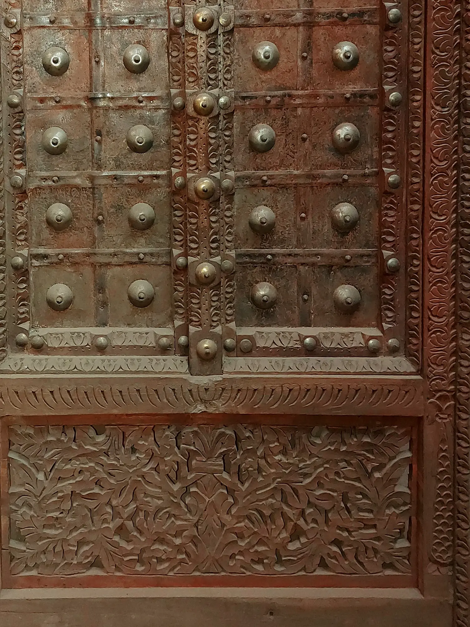 80" Large Floral Design Indian Wood Door With Attractive Carving | Hand Carved Wood Door