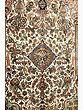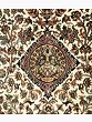 Note the concentric panels and the curves that define them, which are highly characteristic of these famous rugs of the Orient. A minuscule strip of matching azure hemmed along the edges, and short ivory tassels along with the breadth, complete the picture.