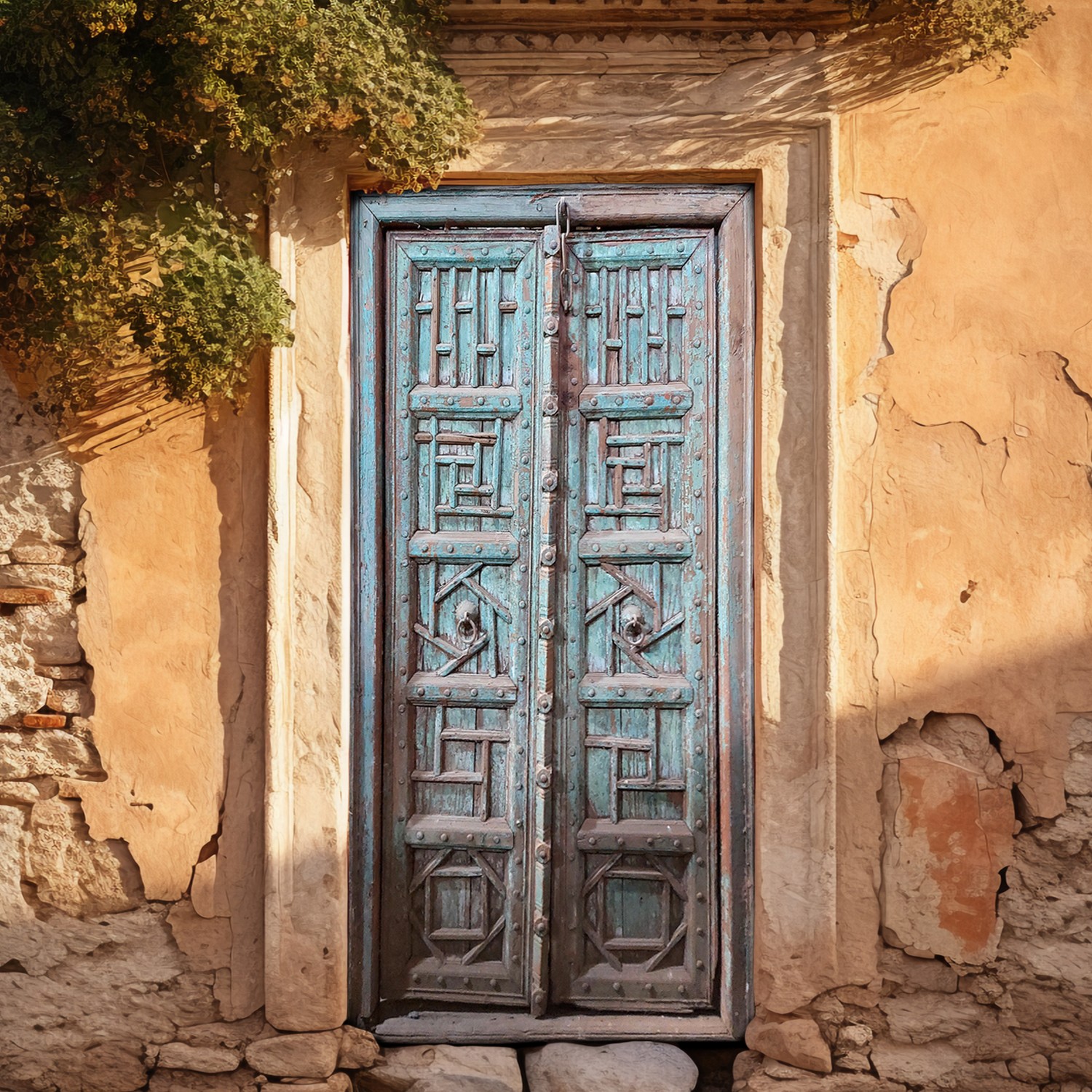 While steeped in history, this door seamlessly integrates into modern interiors, bringing a touch of exotic flair and rustic elegance. It’s perfect for those seeking to add character and depth to their homes, those who appreciate the beauty of imperfection, and those who crave a unique piece that tells a story. Consider using it as a striking entryway to a study, library, or home theater, creating a sense of mystery and intrigue. It can also be repurposed as a decorative headboard, a stunning room divider, or even a distinctive wall art piece. Its solid wood construction ensures durability and longevity, making it a treasured heirloom to be enjoyed for generations. The door's size makes it a grand statement, demanding attention and transforming any space into a gallery of cultural artistry.