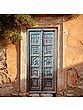 78" Floral Hand Carved And Block Design Wood Door With Vintage Style Knock