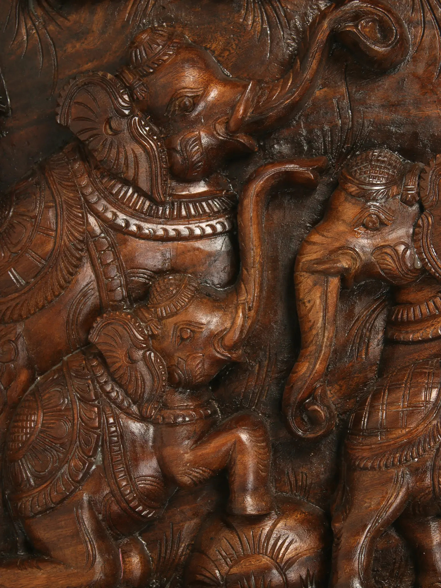 Gajalakshmi Elephants Wooden Wall Art Frame - Symbol of Wealth and Abundance