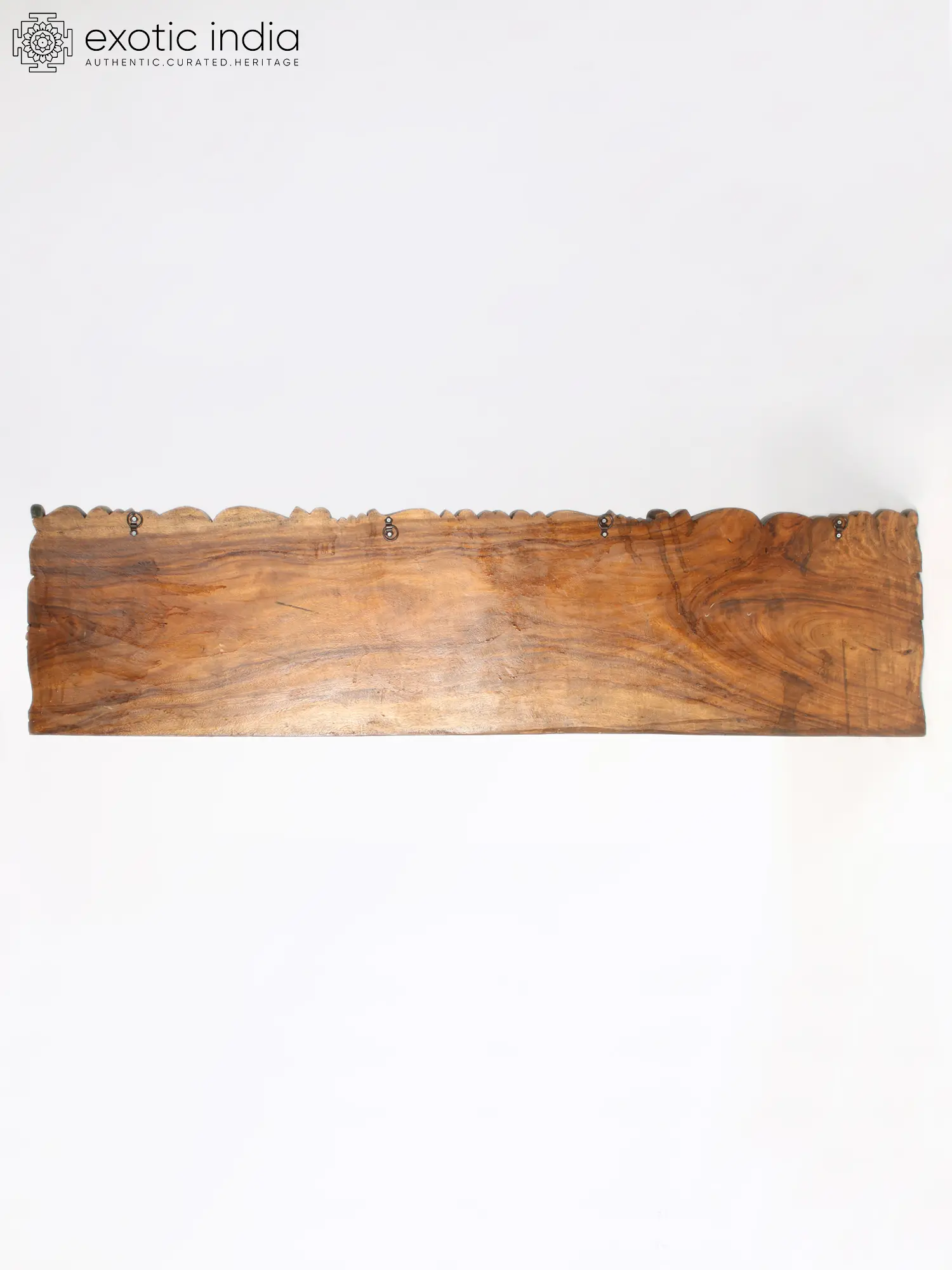 This large-scale wall panel is perfect for making a bold statement in any room of your home. Its considerable size (72.5 inches wide!) allows it to serve as a captivating focal point, drawing the eye and instantly adding a sense of grandeur. Whether you choose to place it above a fireplace mantel, as a headboard accent, or as a striking centerpiece in a spacious hallway, this piece is guaranteed to enhance your home's ambiance. The rich wood grain and exquisite carving provide a natural warmth that perfectly complements both traditional and contemporary design schemes. It's the ideal finishing touch for those seeking to add a unique, luxurious, and culturally significant element to their interior decor.