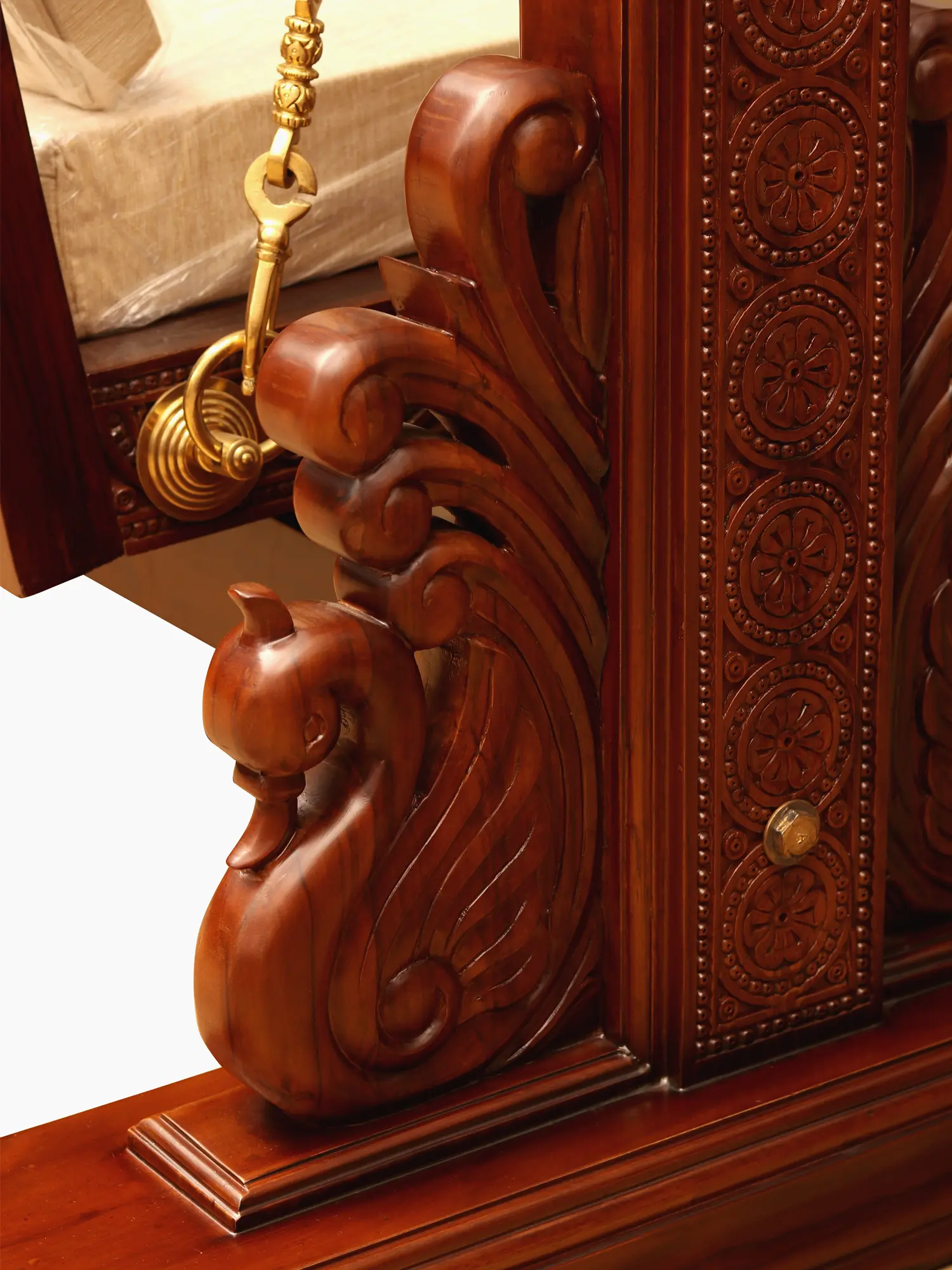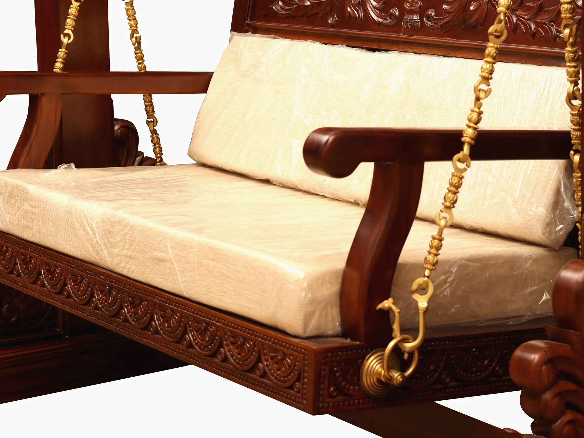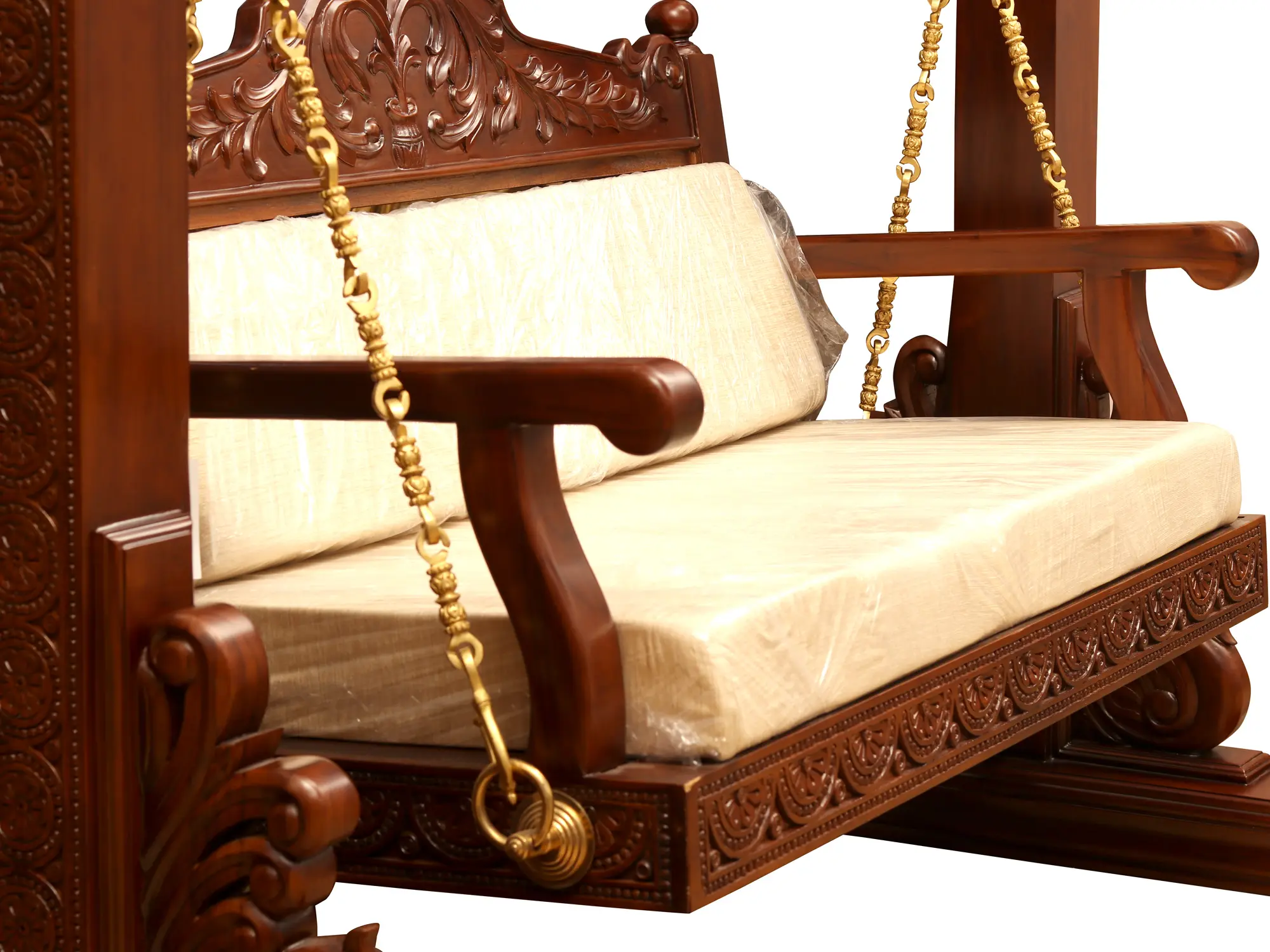 The intricate carving processes used in the manufacture of this swing are what truly distinguishes it. Deep carving, is utilized to provide depth and dimension to the design. After the carving is completed, each swing is polished to perfection to ensure that it looks as good as it feels. It's a roofless swing with intricately carved stands and large legs for maximum support and stability. This swing is excellent for any occasion, whether you want to relax with a good book or spend time with family and friends. Its enormous magnitude.