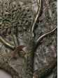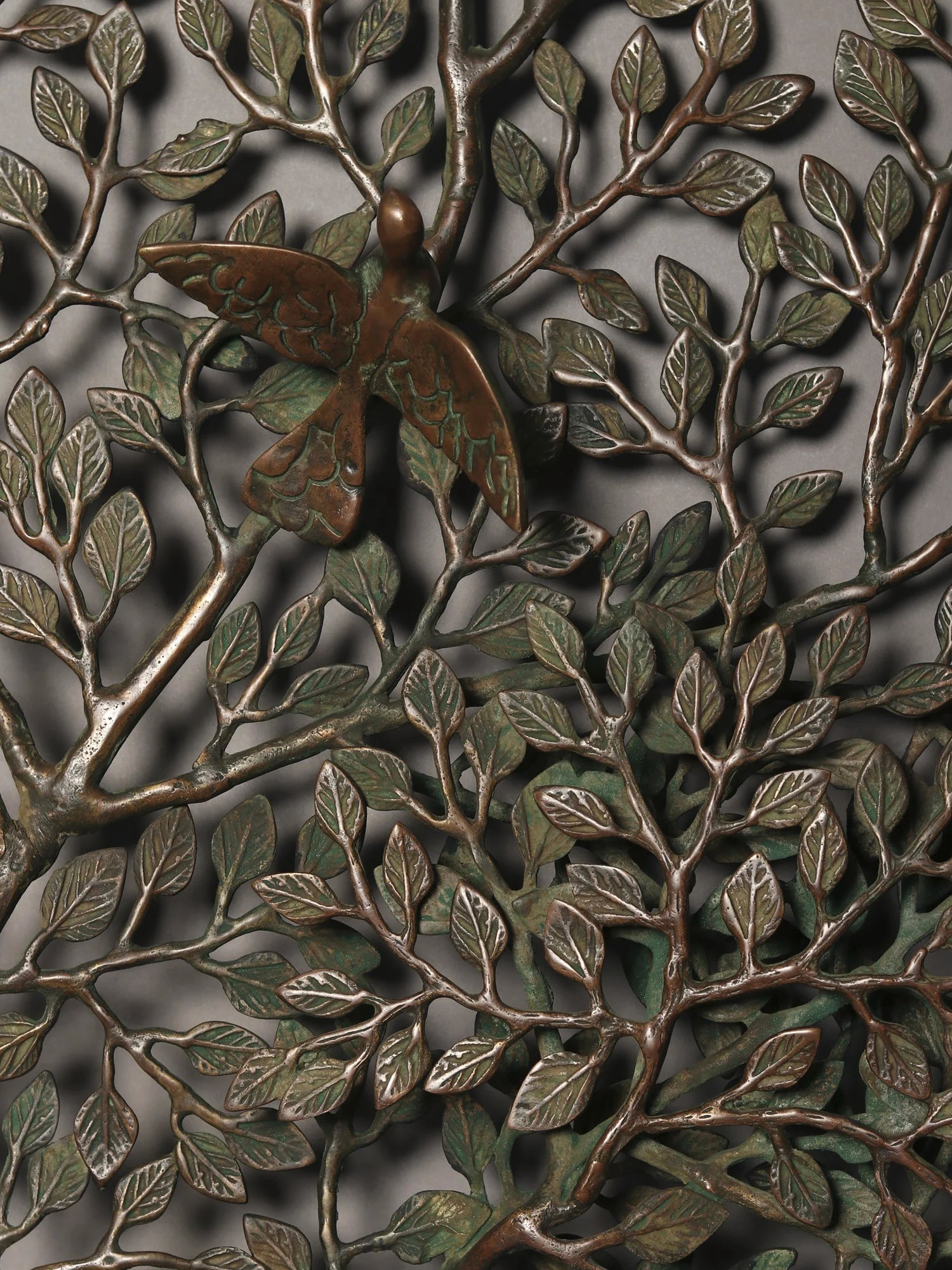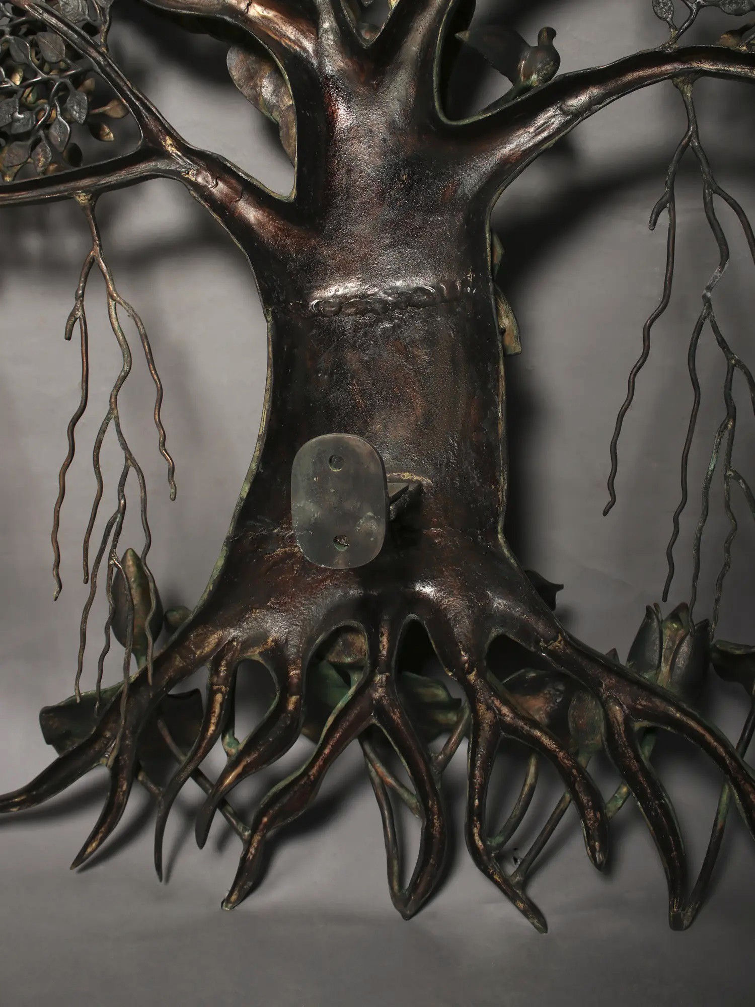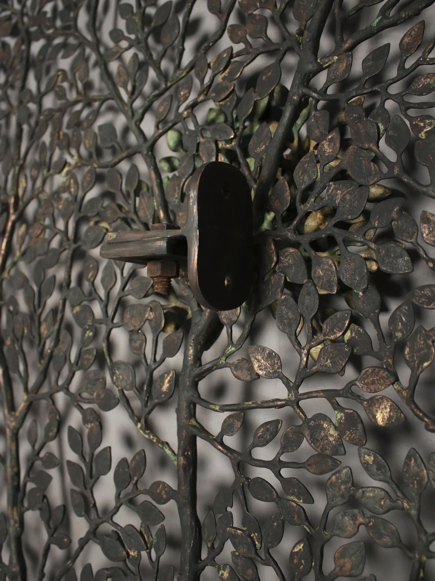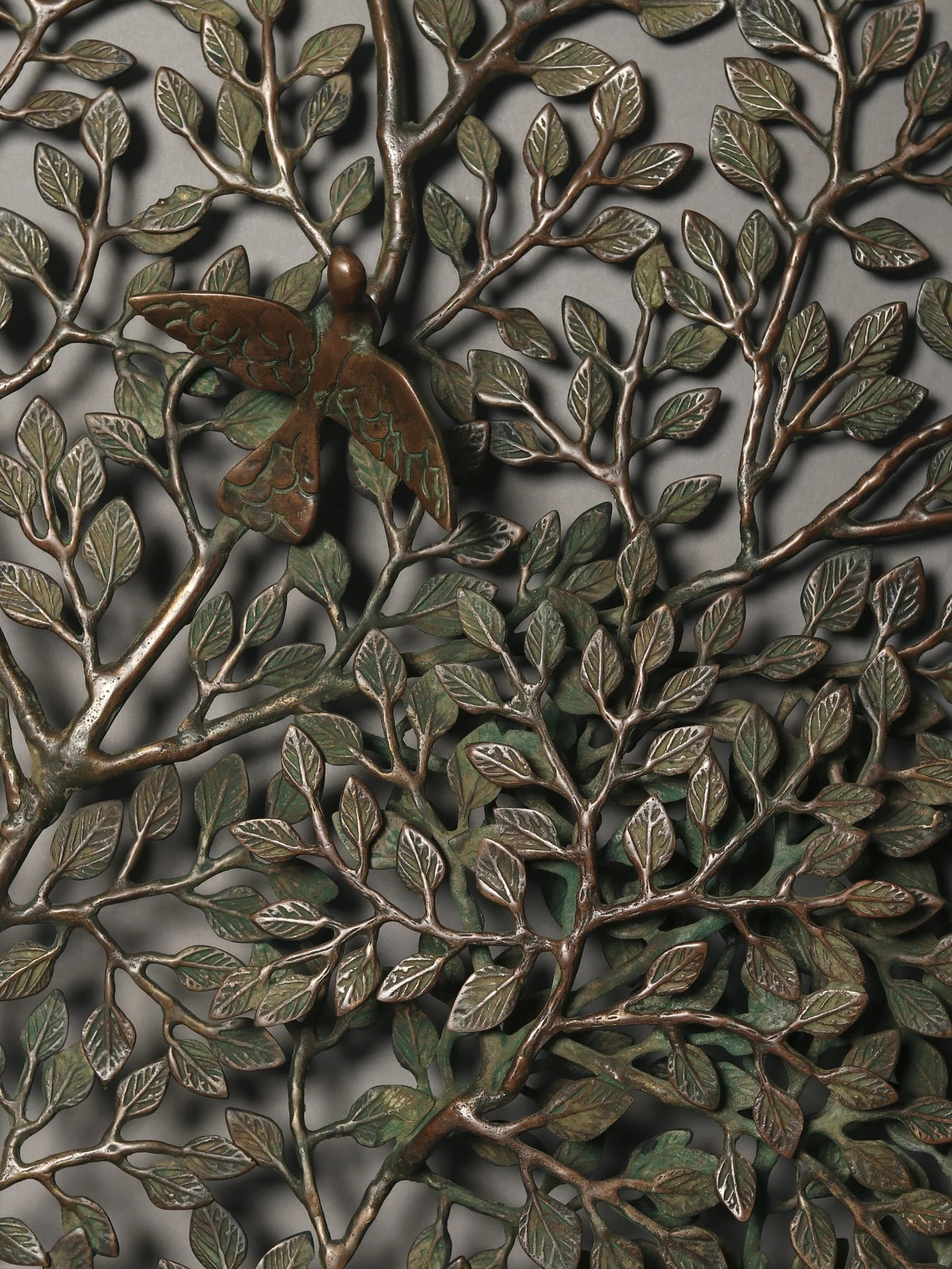 The life-size brass Tree of Life wall hanging here is the mesmerizing delineation of a blooming tree, which will become the attractor of luxuriance and beauty to your space. The roots shooting from branches of this brass Tree of Life suggest that it is a Banayan or Bargad, one of the most auspicious trees in the East.