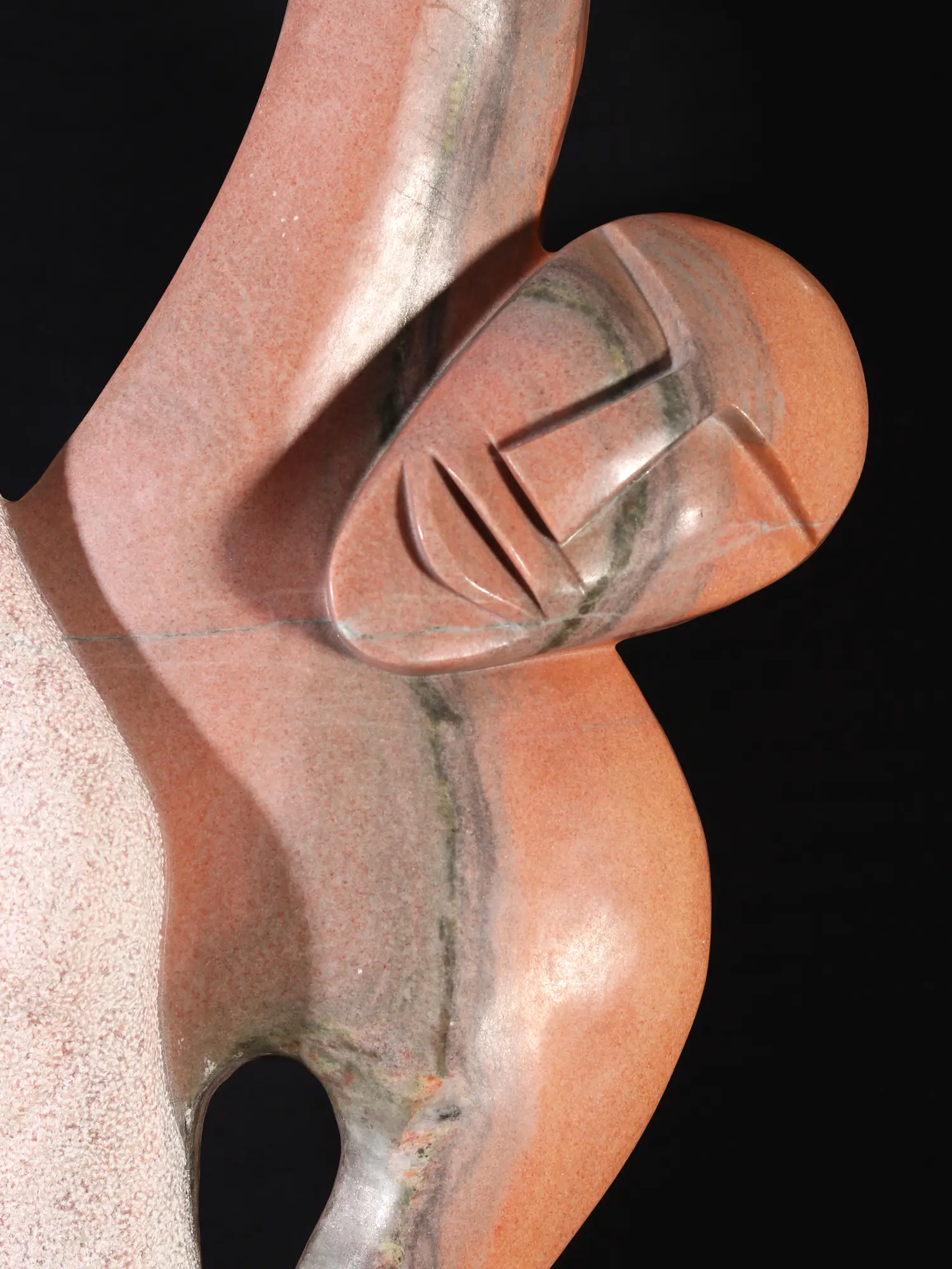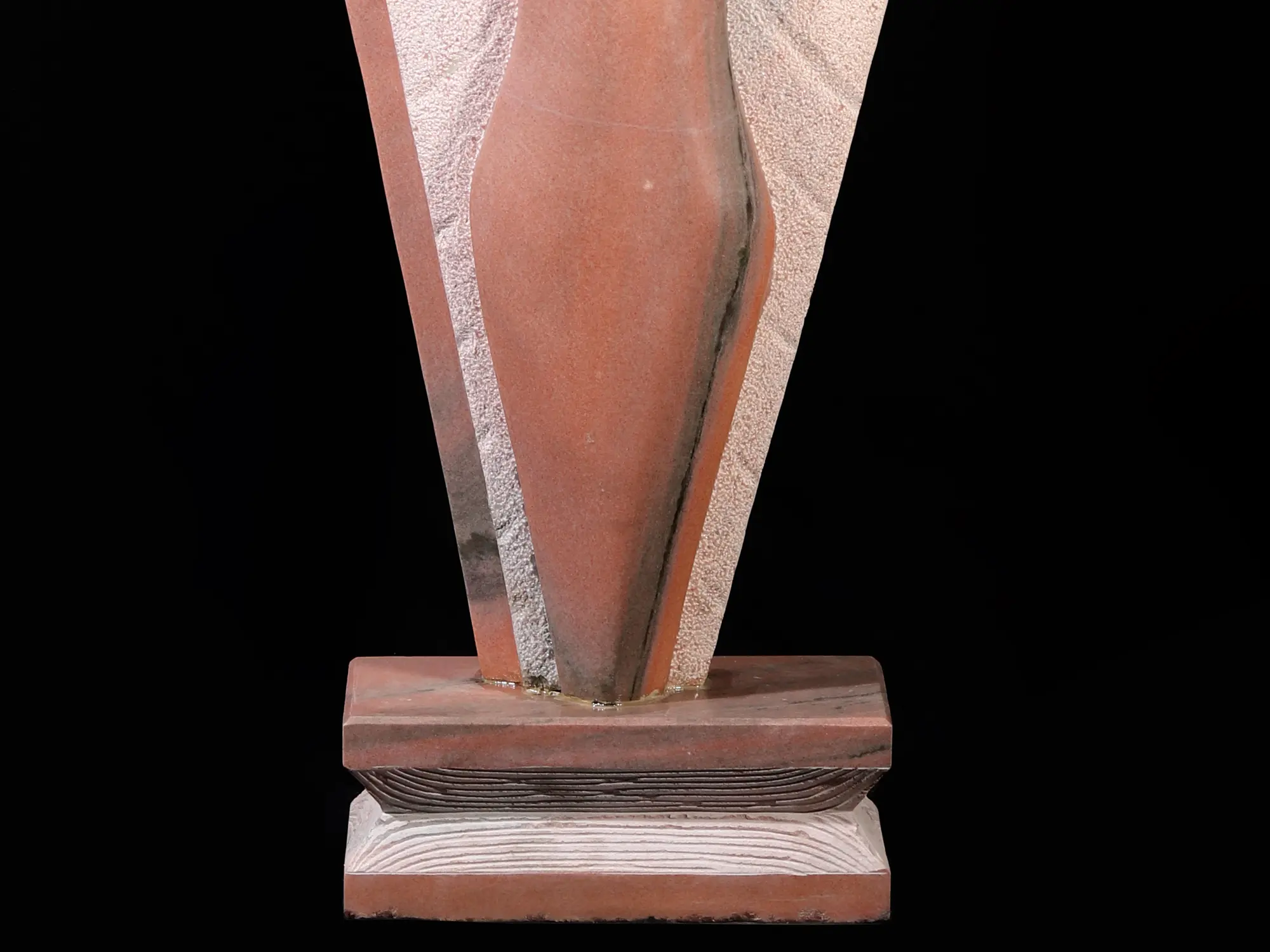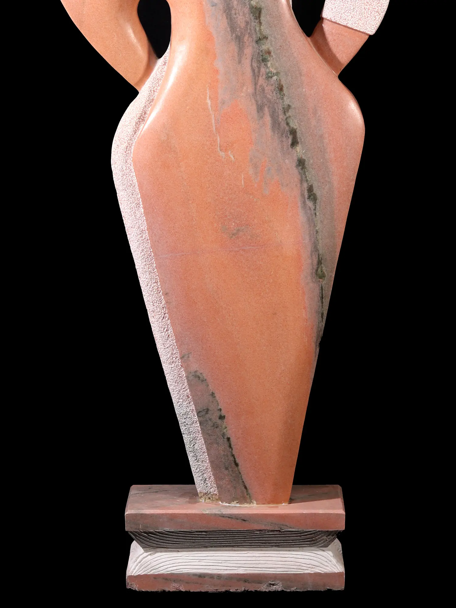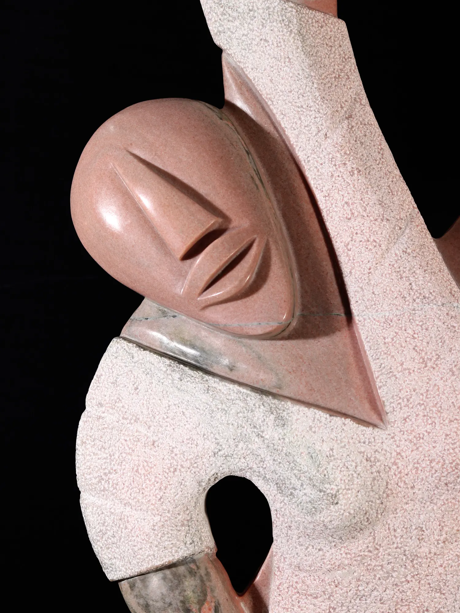This Pink Saffron Stone Statue depicts love and familial relationships in an expressive way. This stunning piece of home decor is made of gorgeous pink marble and has entwined images of a father, mother, and child. To emphasise the mother's importance, her clothing has been deliberately roughened, giving them a distinct white colour that compels attention. The smooth, polished surface of the statue oozes elegance and refinement, while the delicate details depict the family members' intimate bond. This Pink Saffron Stone Statue, with its stunning beauty and symbolic image of love and unity, is a timeless centrepiece that will grace any area with grace and meaning.