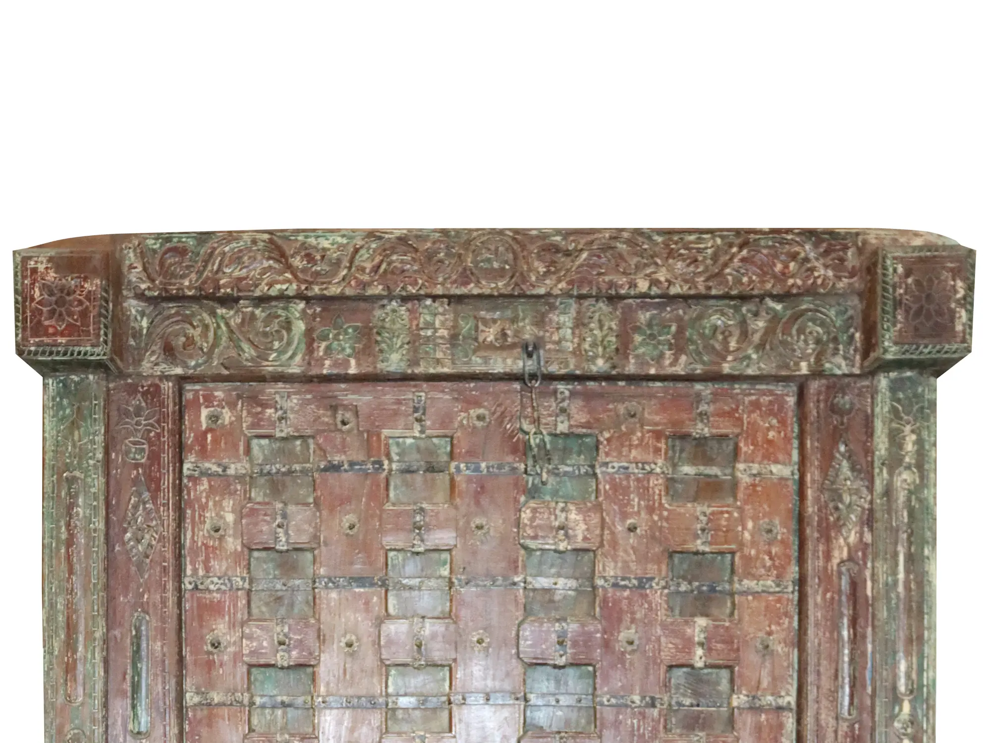Crafted with exquisite artistry, this Vintage Door stands as a testament to the rich traditions of India. This entrance, a spectacular piece of art, exudes an undeniable aura of timeless beauty and cultural heritage. Intricate carvings, ornate patterns, and traditional motifs adorn its surface, demonstrating the mastery of artisans. Its weathered appearance evokes a sense of nostalgia, while the elaborative skills transport you to a bygone era. This spectacular artwork tells a tale of history and gives a rustic charm to any space. As an embodiment of tradition and craftsmanship, this vintage door is a captivating focal point that brings a touch of elegance and cultural significance to any home or establishment.