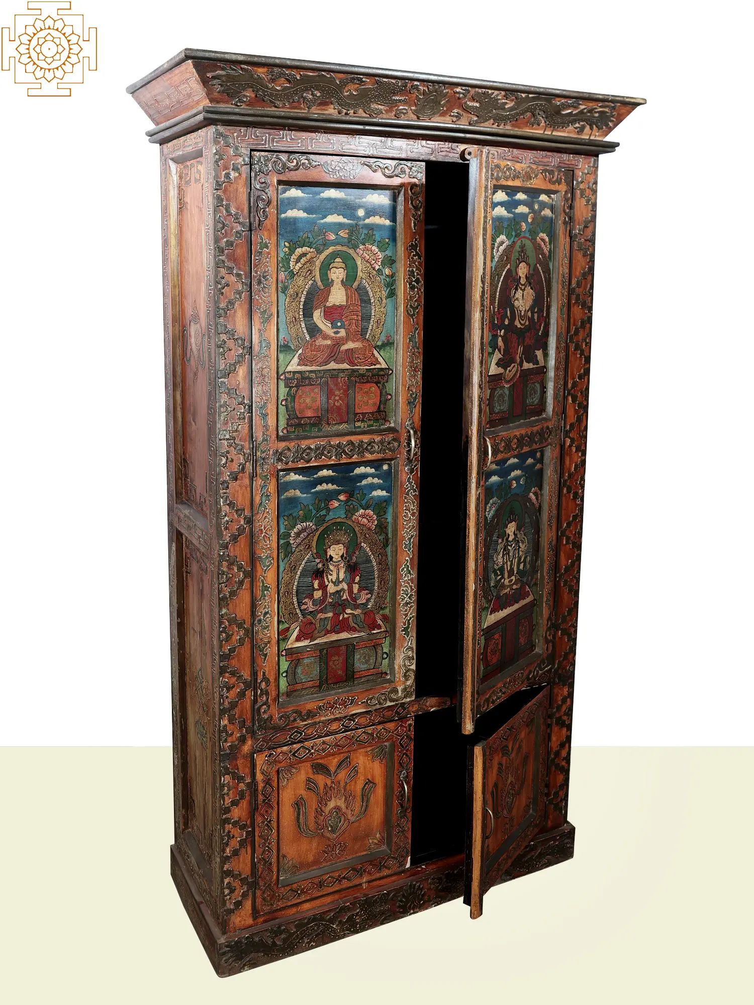 55" Vintage Floral Design Decorative Cabinet | Handmade