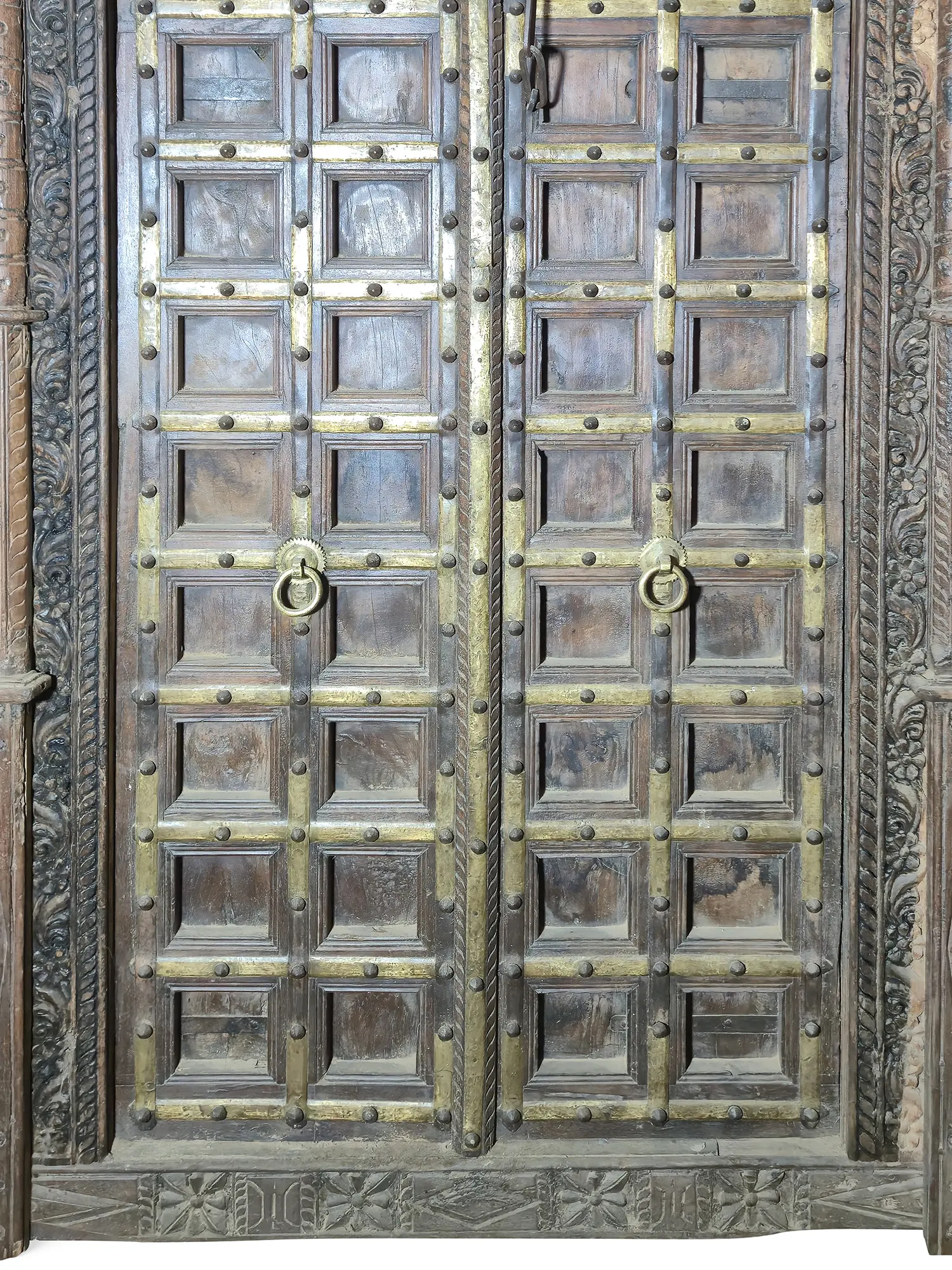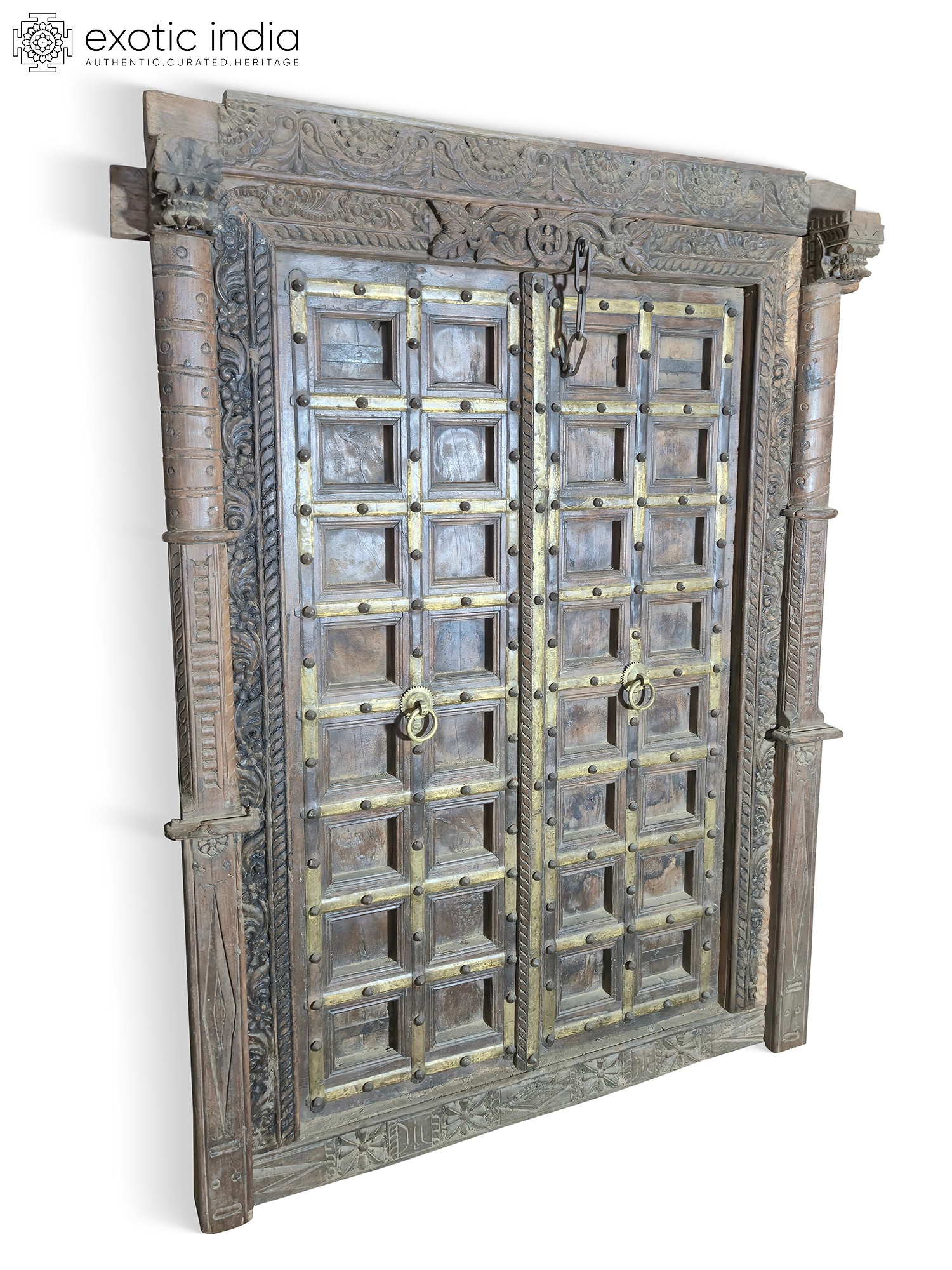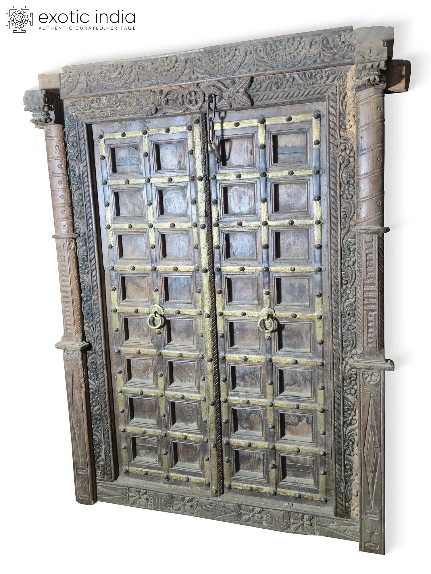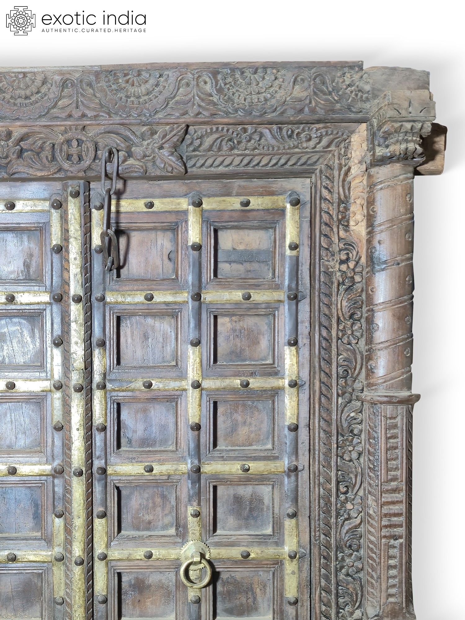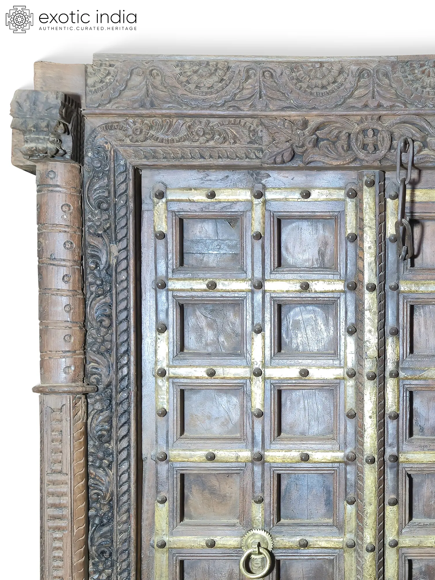85" Large Square Design Indian Wood Door With Carving On The Top | Wood Door