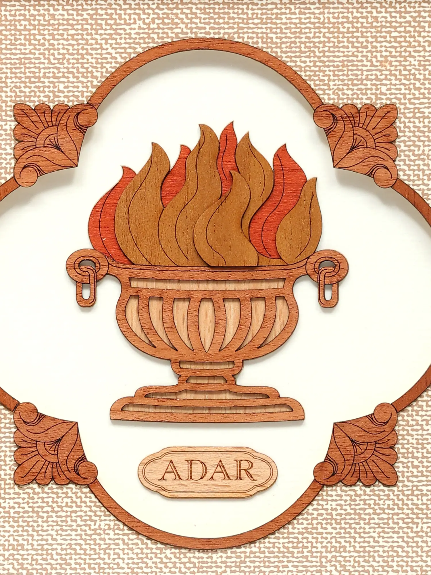 8" Adar - The Sacred Fire | Wall Hanging Wood Frame