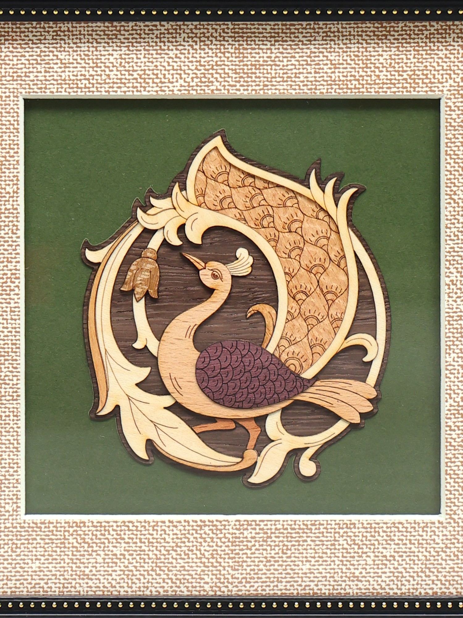 Round Peacock | Wood Carved Frame | Wall Hanging