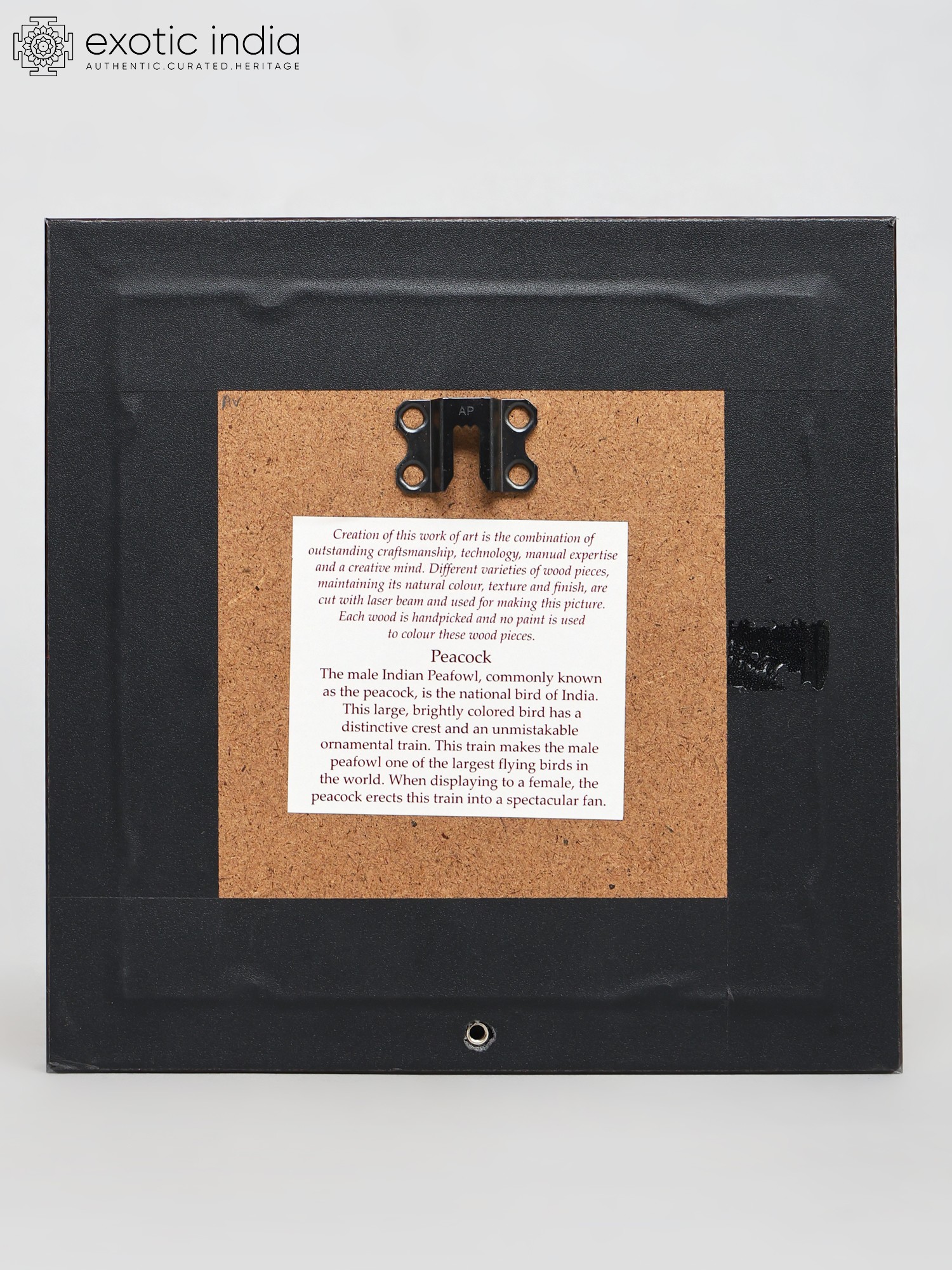 15" Peacock with Beautiful Long Tail | Wood Carved Frame | Wall Hanging