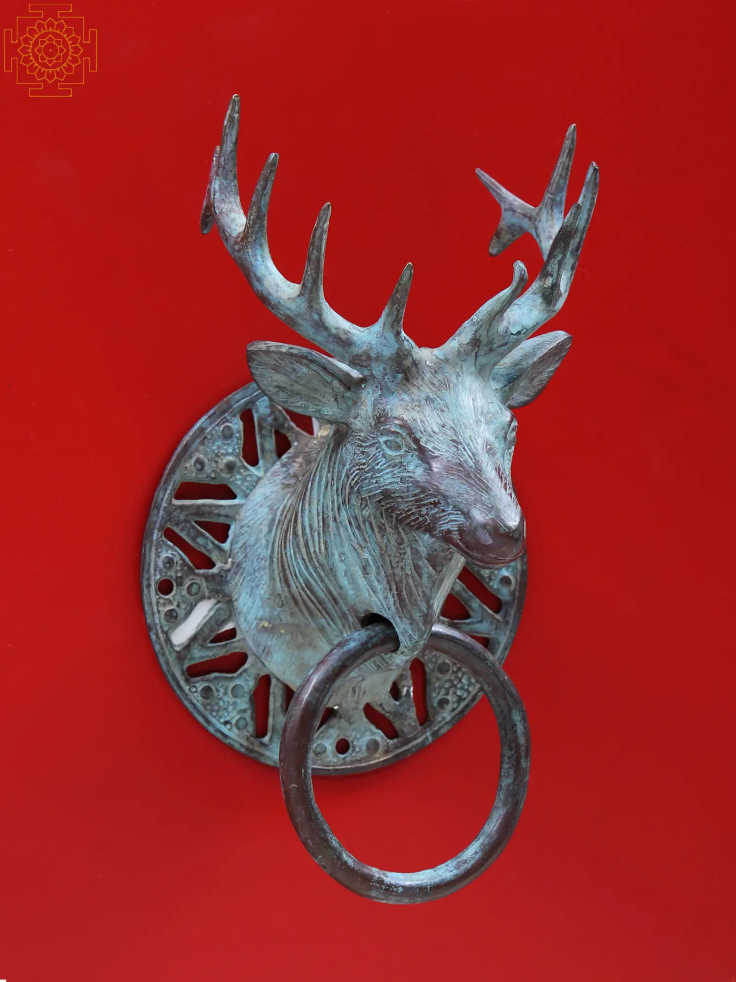 Reindeer are symbols of happy times. They are the adorable sled pullers of Santa Claus. In many cultures, they are also considered the guardian spirits. It is an ancient belief that reindeer can travel up to the Aurora appearing in the North and South Poles. This Brass Reindeer Head Door Knocker is a tribute to the animal and its contribution to spreading happiness all over the world. The Door Knocker with a blue patina tint looks like an antique piece. It is a very useful and decorative piece that can enhance the look of a gloomy door.