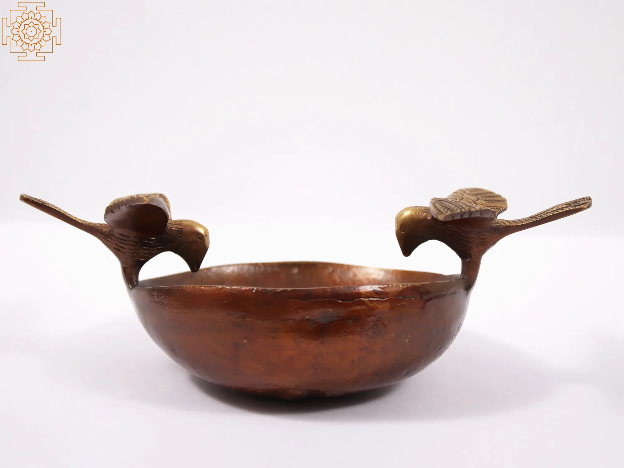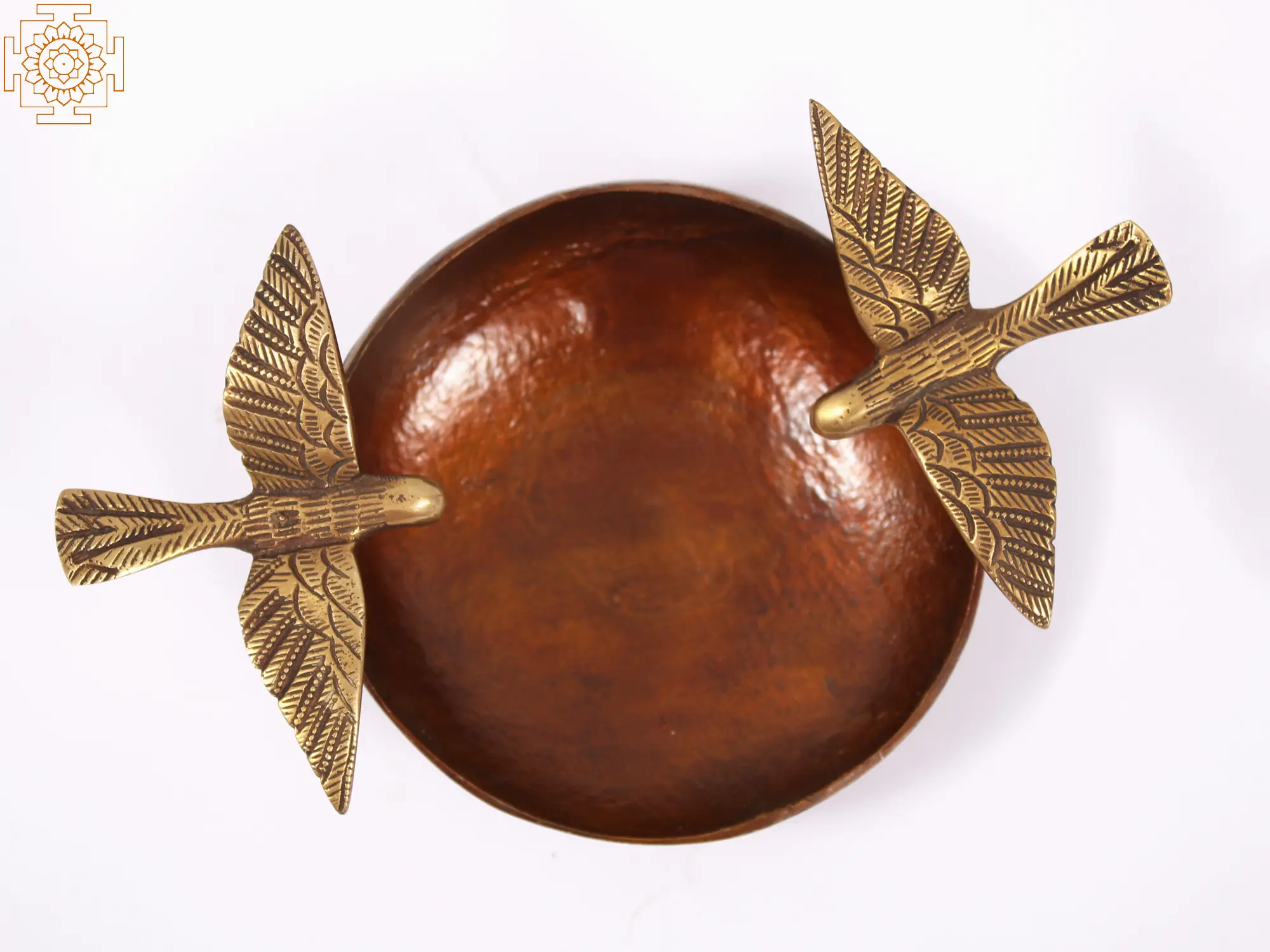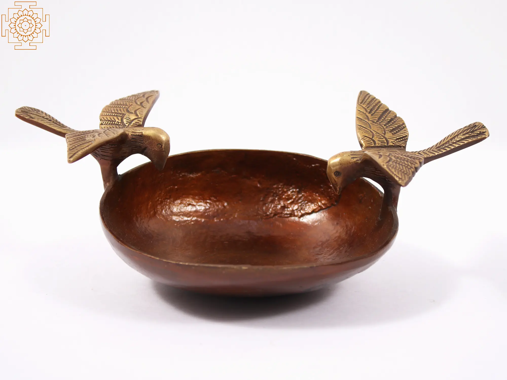 This Urli with stand exemplifies the elegance and simplicity of minimalistic design. The Urli's exquisite brass body, coated in burned copper, exudes subtle elegance and sophistication. The birds dancing atop the Urli's outer circle give a natural elegance and beauty to the image. The dazzling allure of brass is combined with the relaxing presence of birds in this innovative arrangement, providing a lovely contrast. The Urli's simplistic design transforms it into a captivating centerpiece, softly enriching any setting with its polished appearance and a subtle reminder of the beauty found in simplicity.