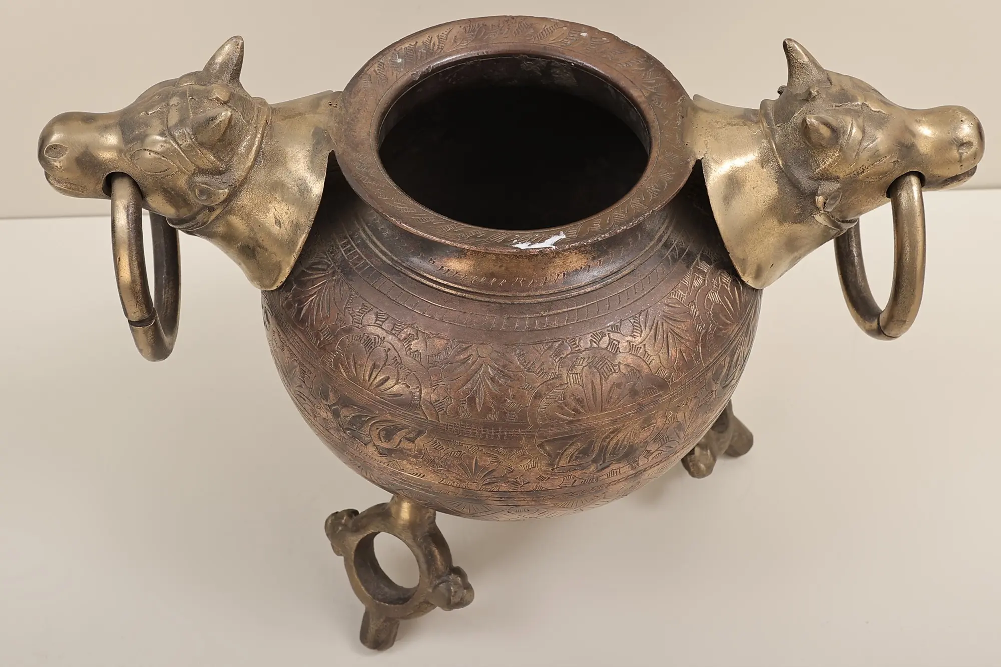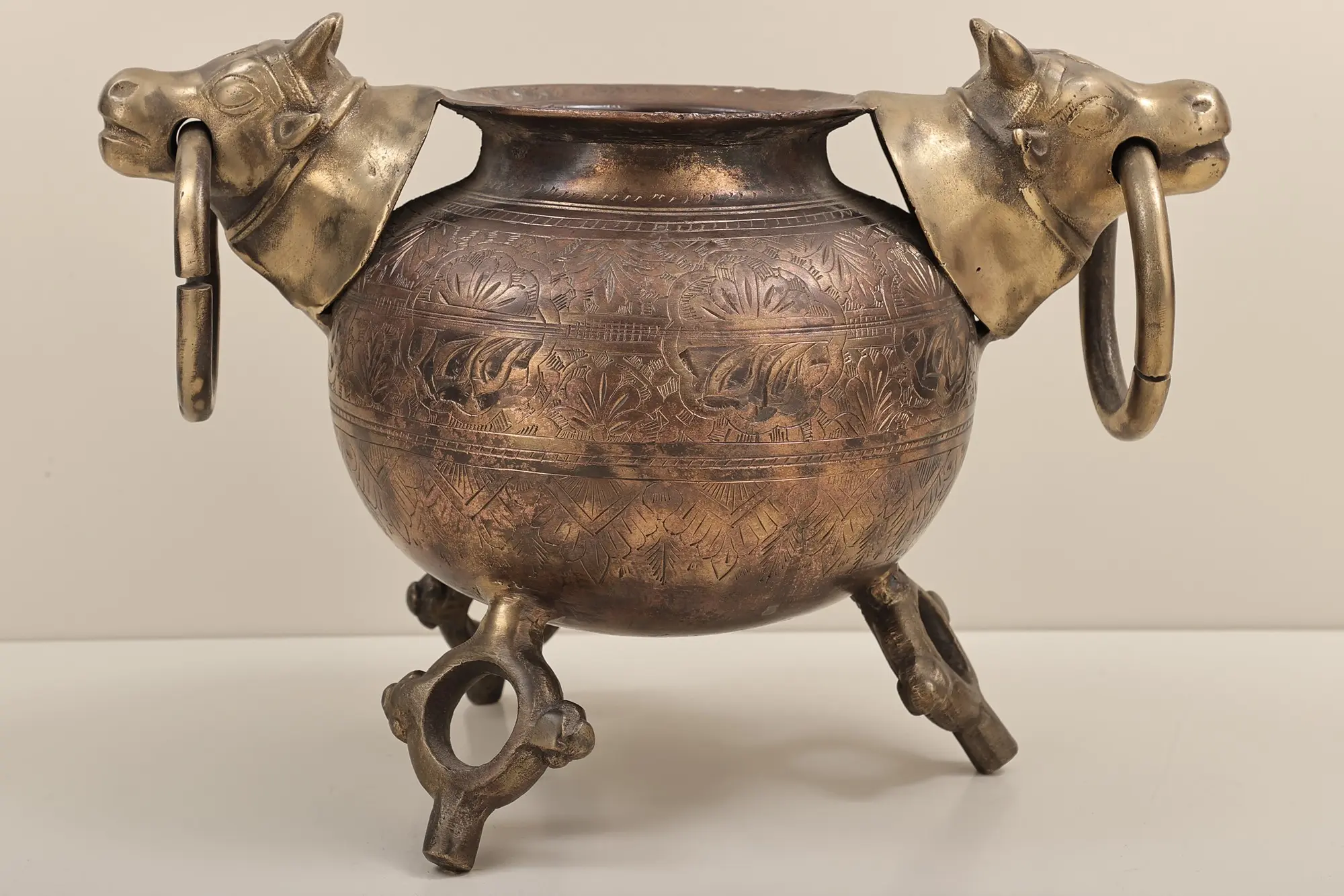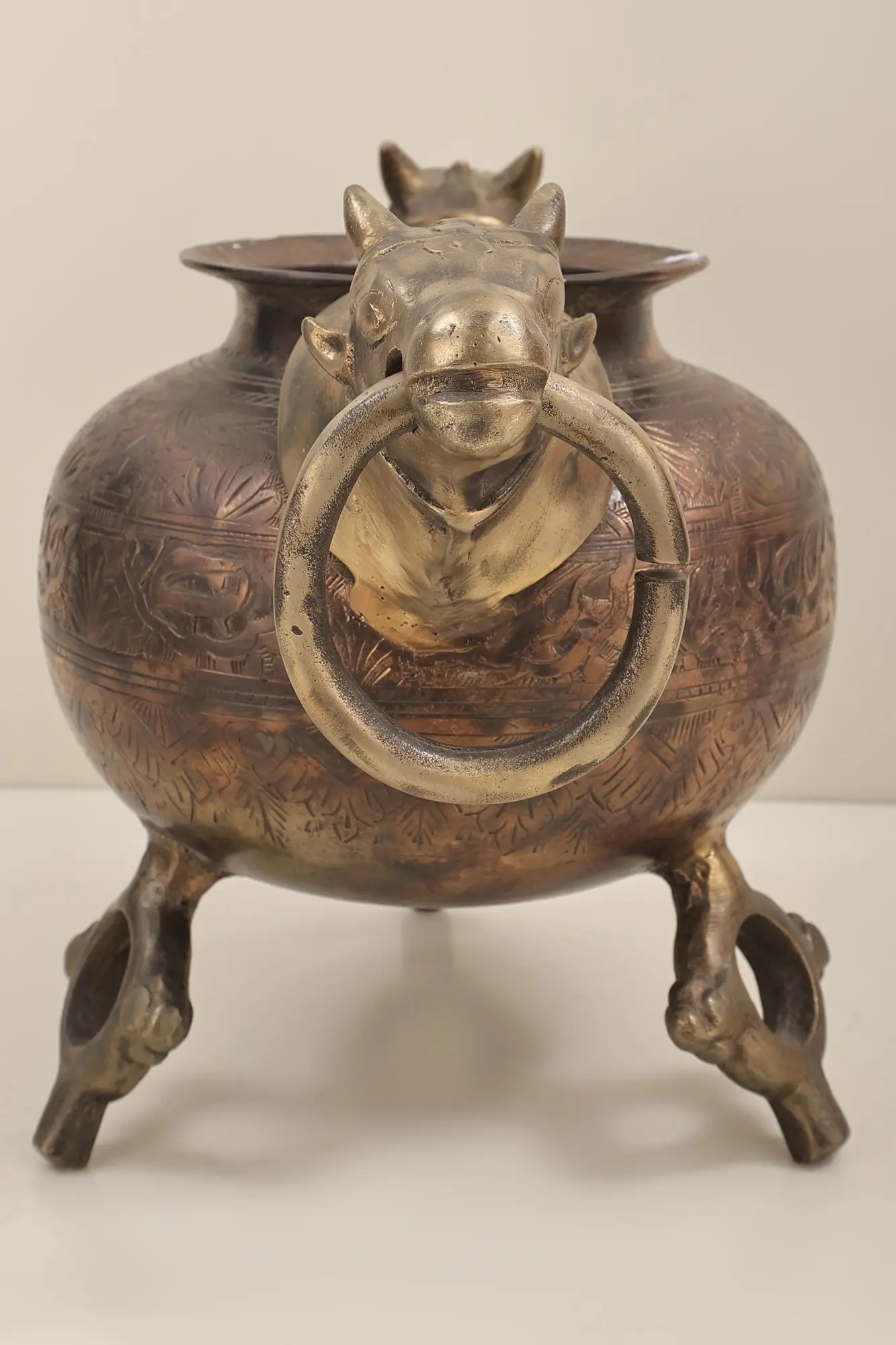 Immerse yourself in the culinary traditions of India with our Cooking Bowl (Handi) featuring a Bull Bust Handle. Crafted with artisanal expertise, the brass construction ensures even heat distribution, allowing you to create culinary wonders with ease. The unique Bull Bust Handle not only adds a touch of cultural symbolism but also serves as a testament to the skilled craftsmanship embedded in every detail.