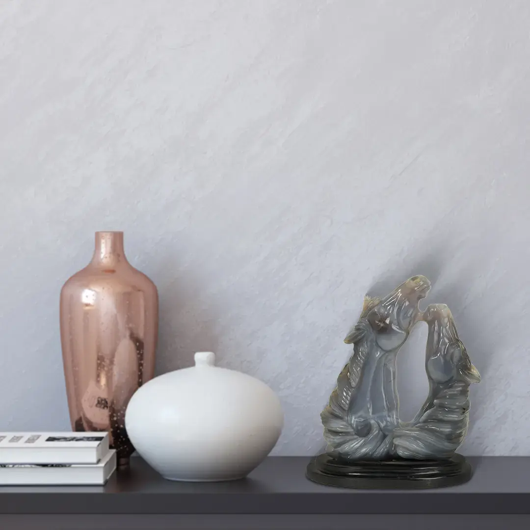 Agate—the stone of balance and protection—meets the grace of galloping horses. This showpiece celebrates movement and stability. The agate’s natural patterns mimic the play of wind on their manes. Picture it on your sideboard—the horses seem ready to leap into adventure. Their eyes, carved with precision, hold the promise of open fields, distant horizons. Let them inspire courage—the kind that propels you forward, even when the path is uncertain.
