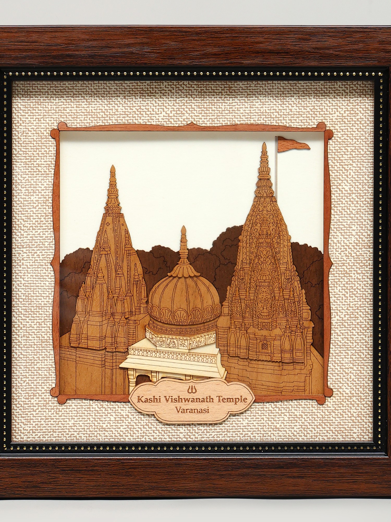 8" Kashi Vishwanath Temple, Varanasi | Wood Carved Frame | Wall Hanging