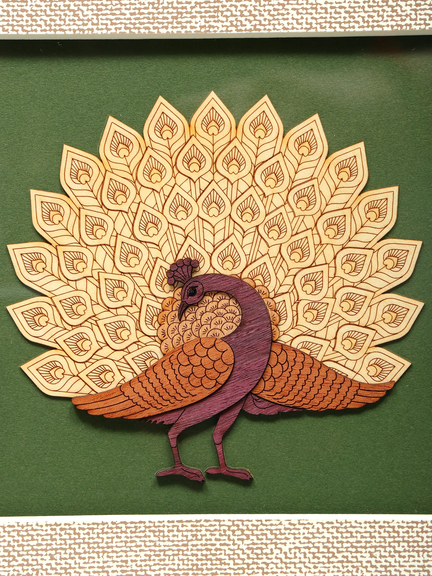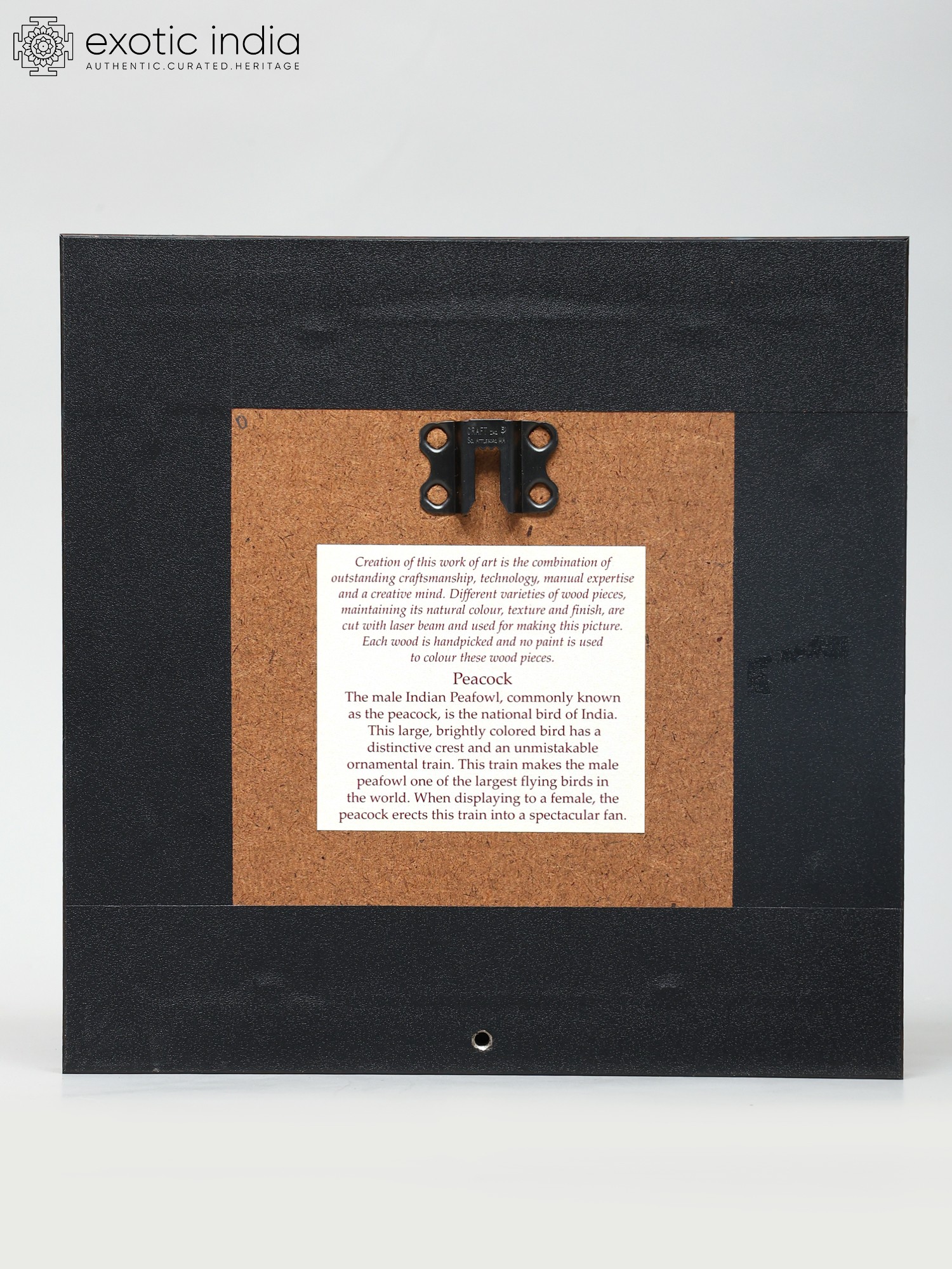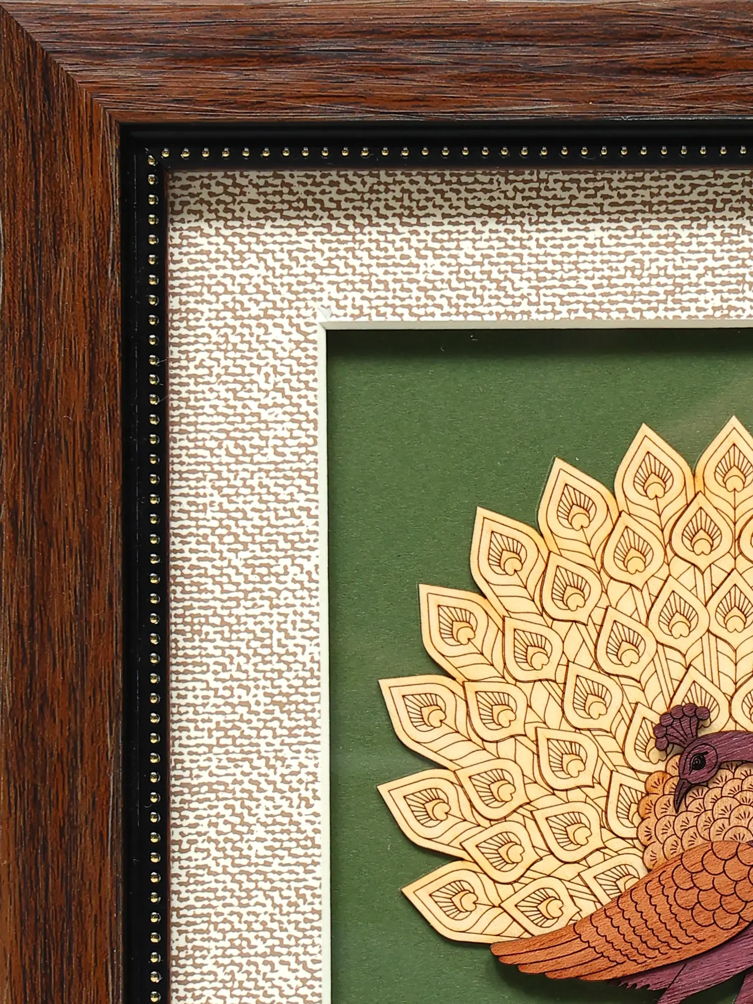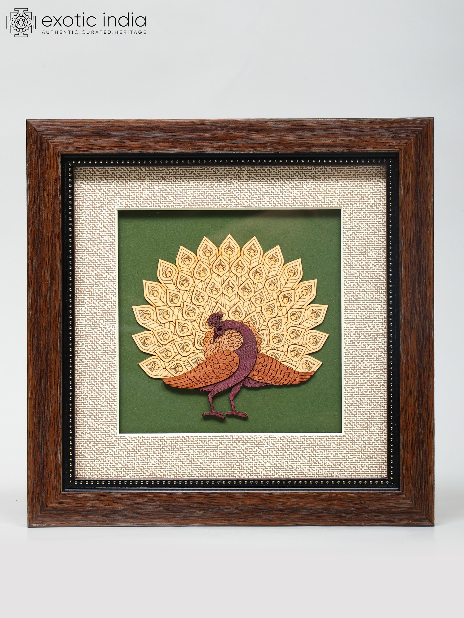 8" Peacock with Open Tail | Wood Frame | Wall Hanging