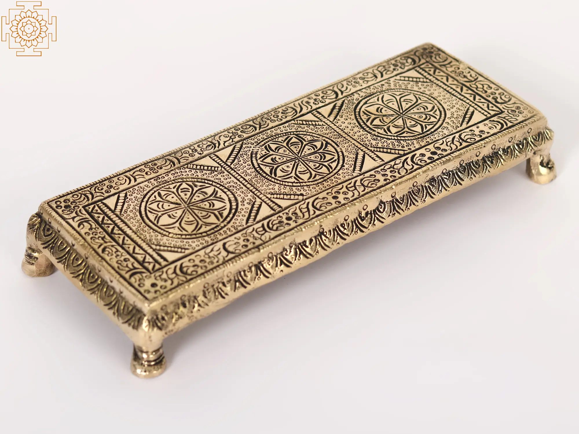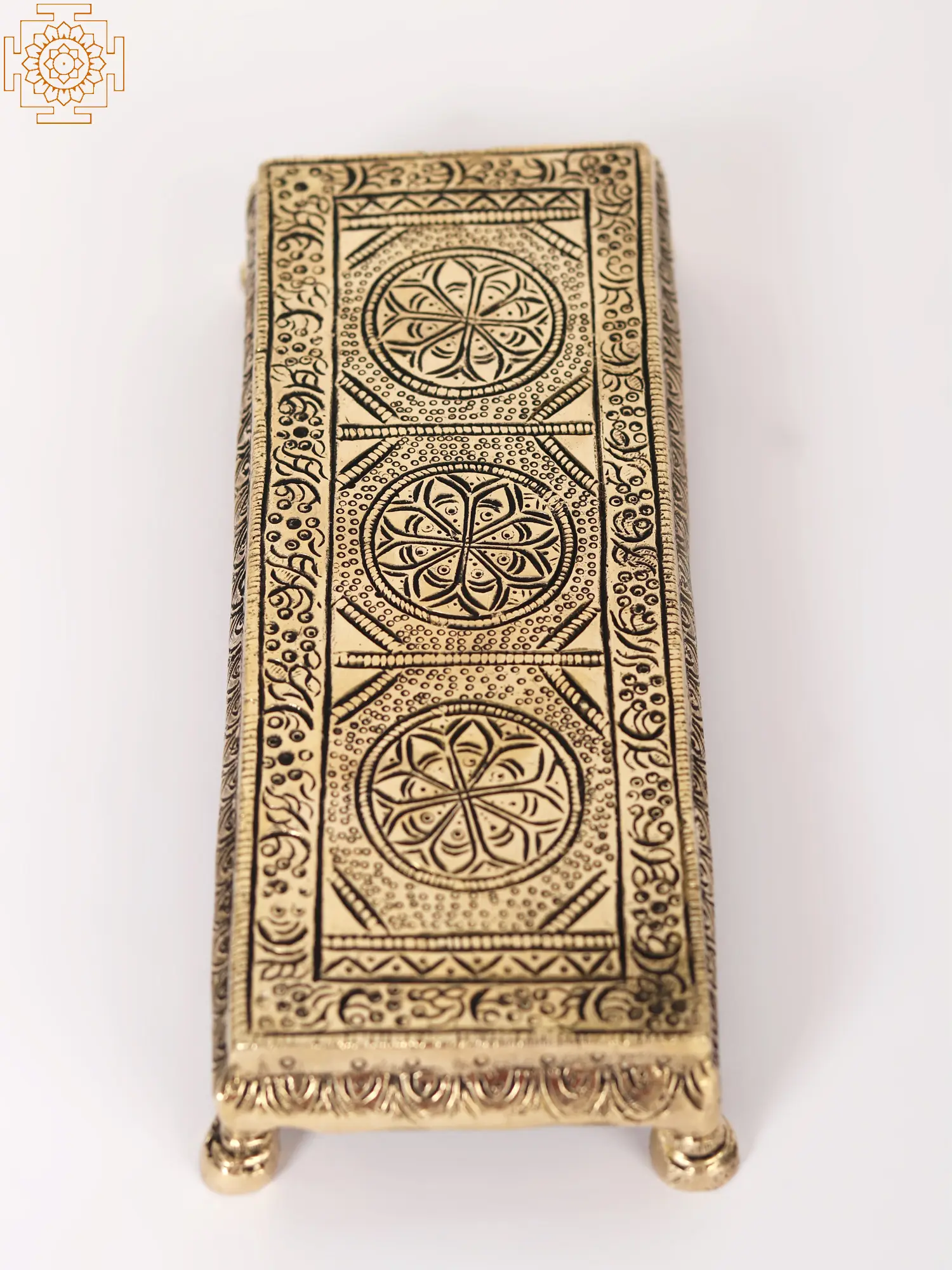 A beautiful creation in the play of geometry - this brass pedestal’s intricate design can be appreciated by each eye! Cut into three middle squares inside which the octagons border the petal-floral circles, the border is as prominent and well-designed.
