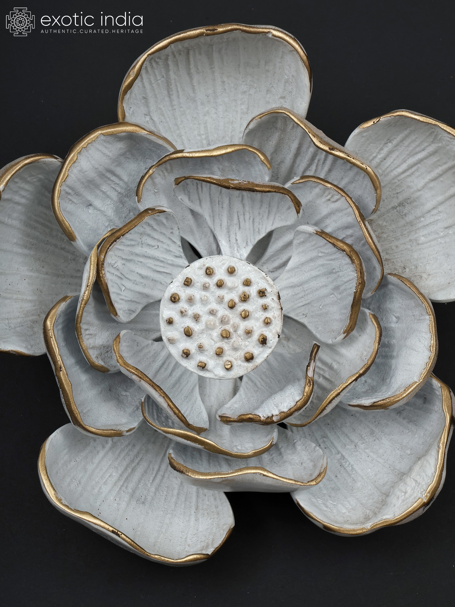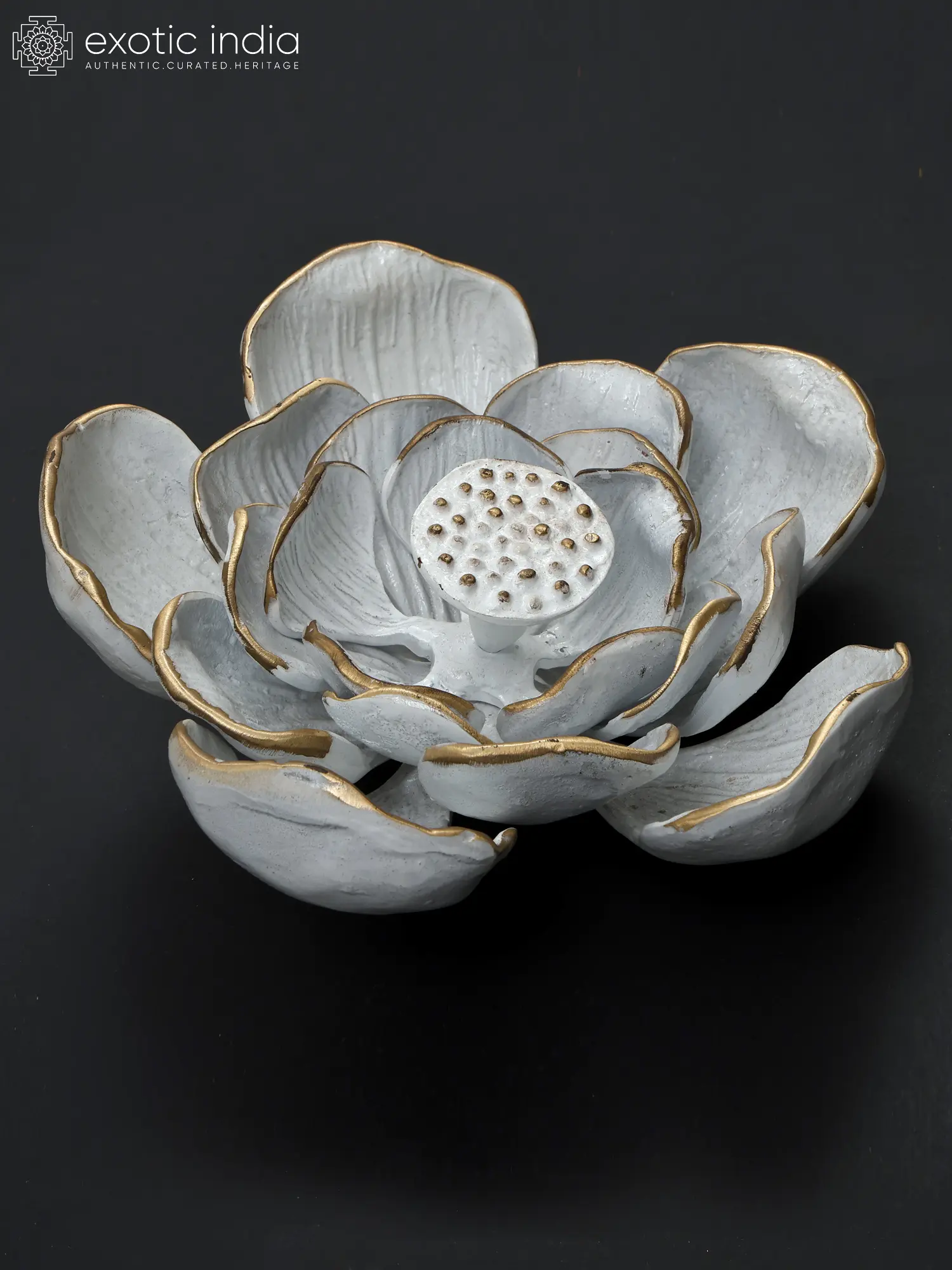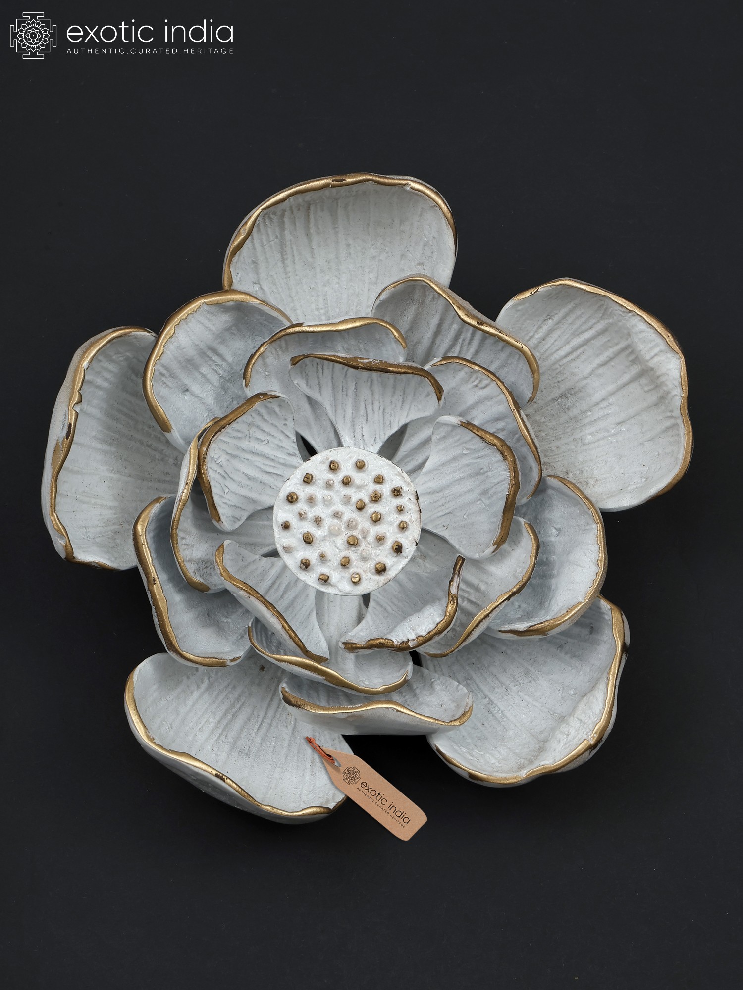 Witness the dedication to craftsmanship in every detail of this captivating piece. Meticulously formed from high-quality brass, it showcases the artisan’s skill in shaping the metal into lifelike petals. The rich, hand-applied finishes, a soft white contrasting with a burnished gold rim, speak to an artisanal process that prioritizes depth and character.