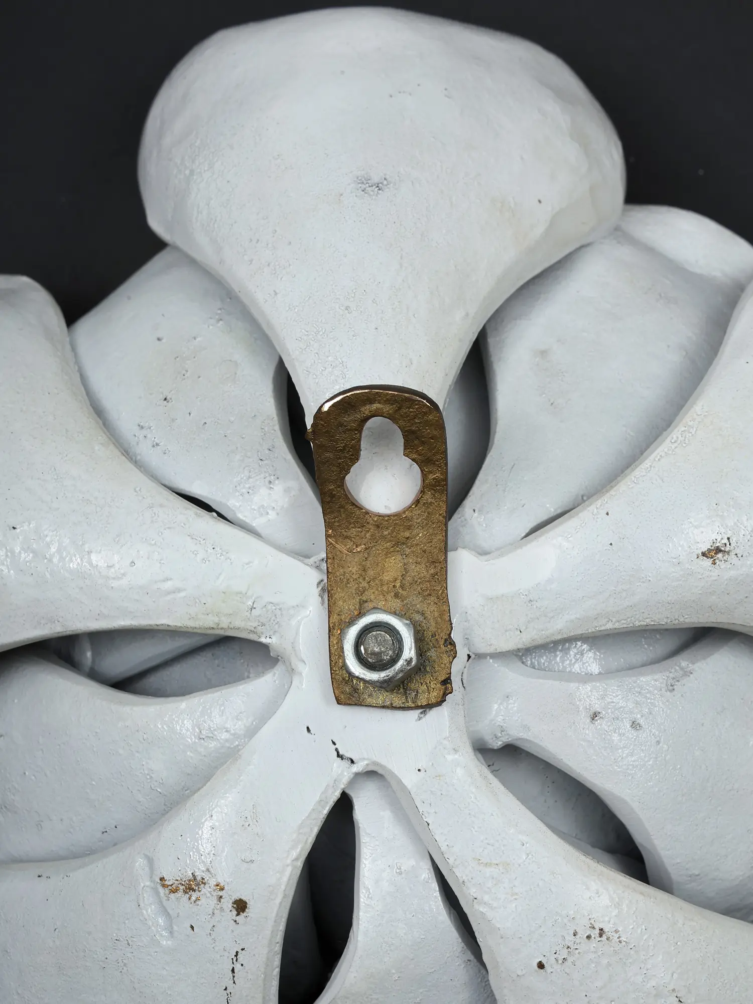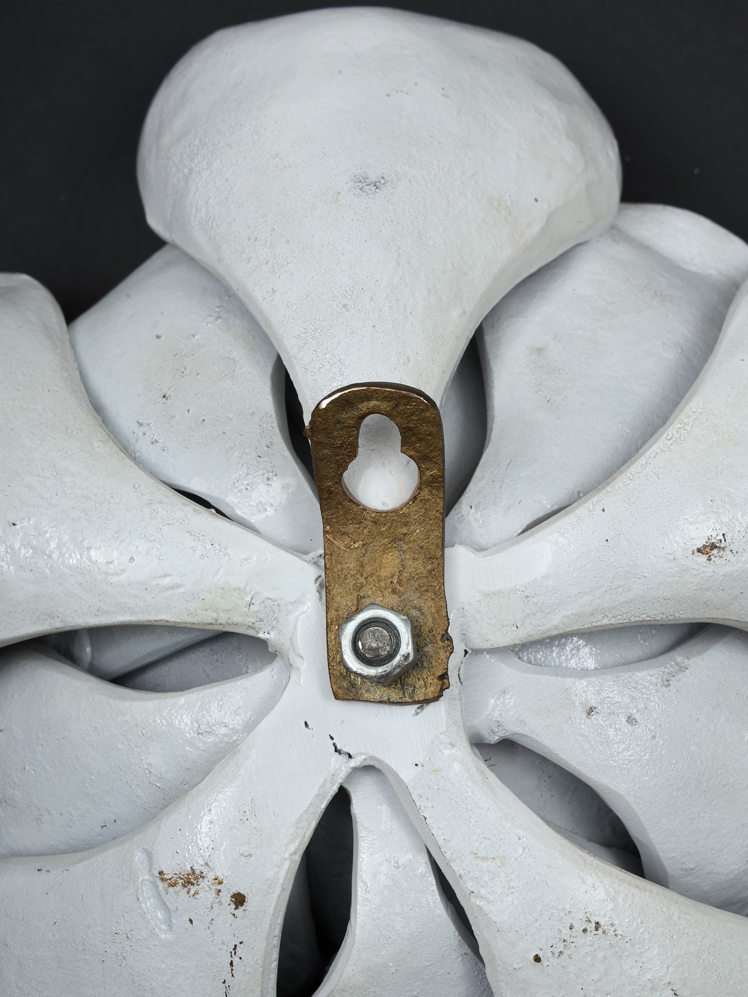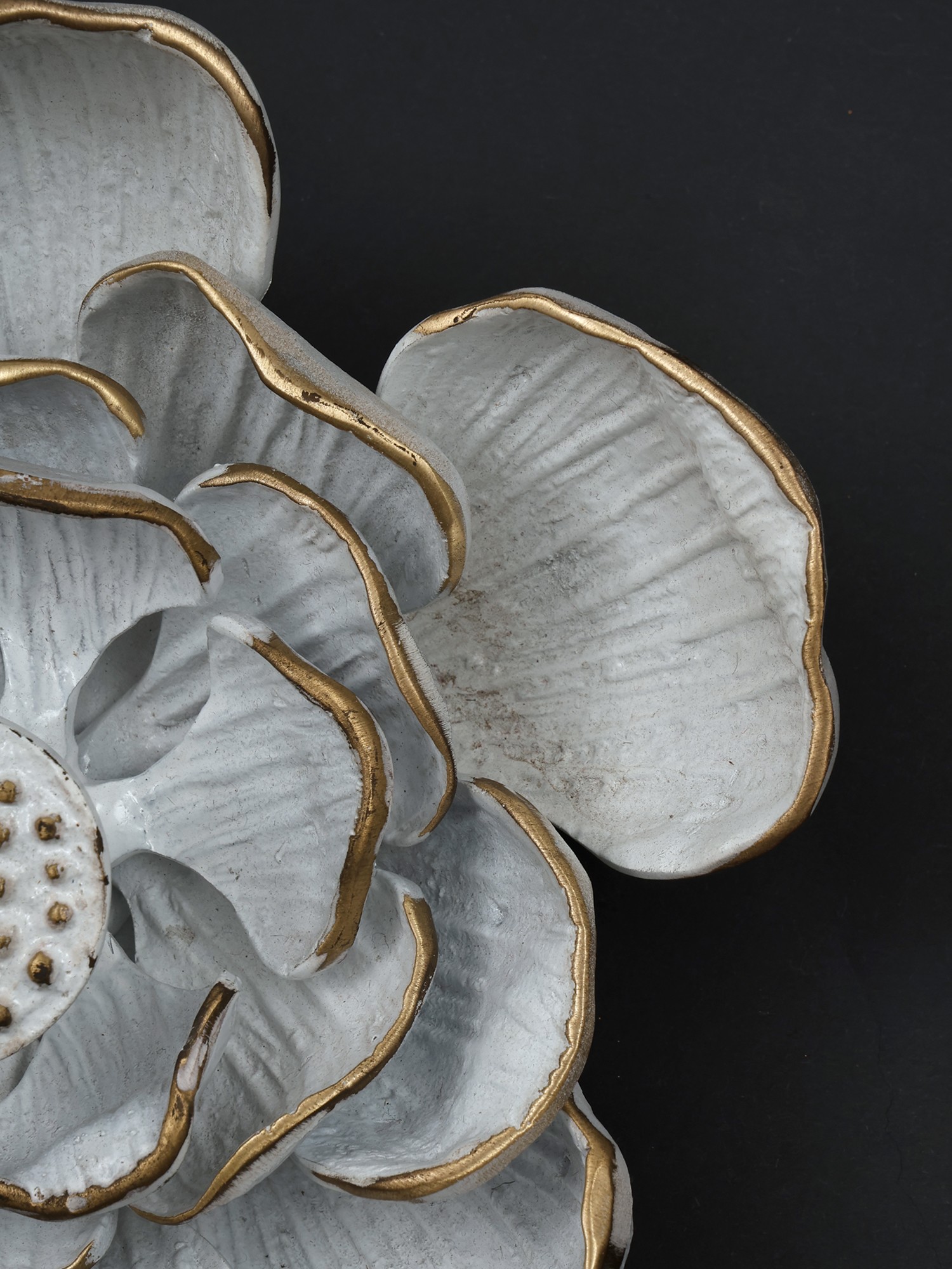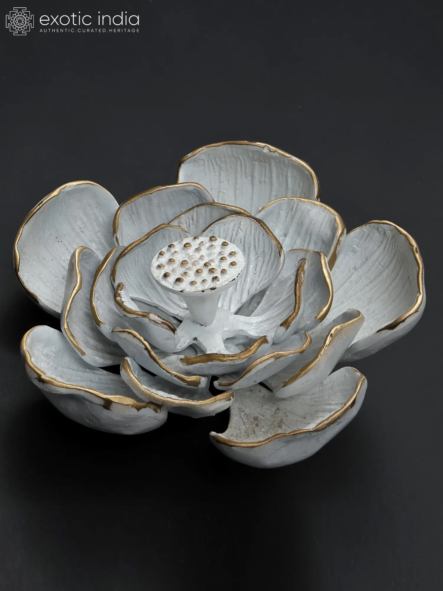 Witness the dedication to craftsmanship in every detail of this captivating piece. Meticulously formed from high-quality brass, it showcases the artisan’s skill in shaping the metal into lifelike petals. The rich, hand-applied finishes, a soft white contrasting with a burnished gold rim, speak to an artisanal process that prioritizes depth and character.