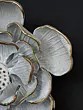 Each layer of this floral wall accent, measuring eight inches in height and width, is thoughtfully designed to capture the natural unfolding of a bloom. The intricate texture of the petals, enhanced by the contrasting gold edging, draws the eye and invites admiration. Its substantial build, with a length of 3.5 inches, provides a captivating three-dimensional presence that stands proudly on your wall.
