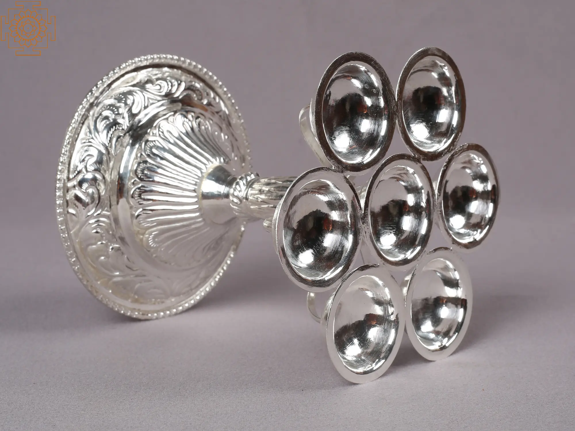 The eight deepak pooja oil lamp with a stand is a symbol of spirituality and reverence in Hindu culture. Mae with intricate detail and exquisite craftsmanship, this lamp embodies the sacred tradition of lighting lamps during religious ceremonies and rituals.
