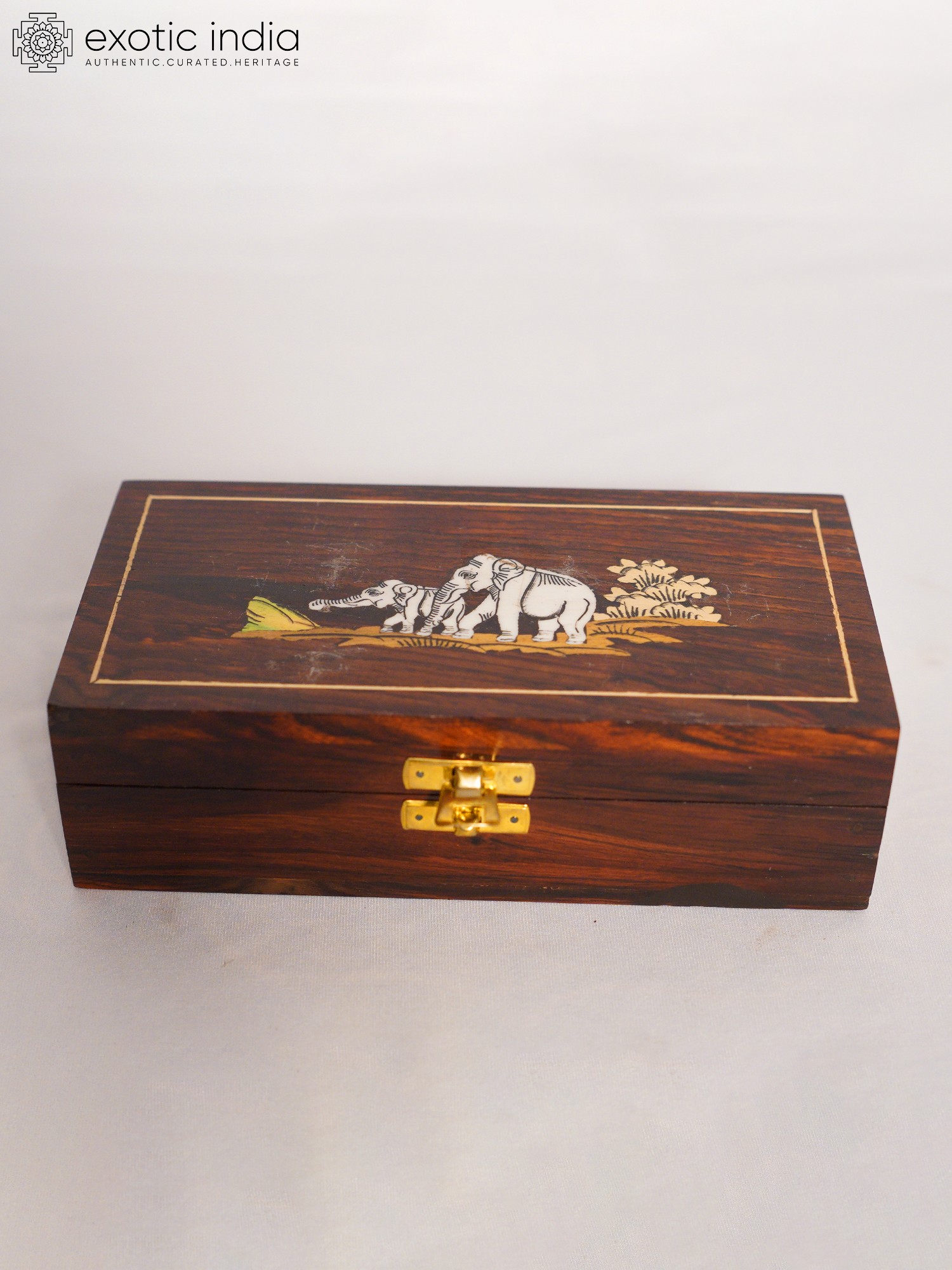 8" Elephants Wood Jewellery Box With Inlay Work