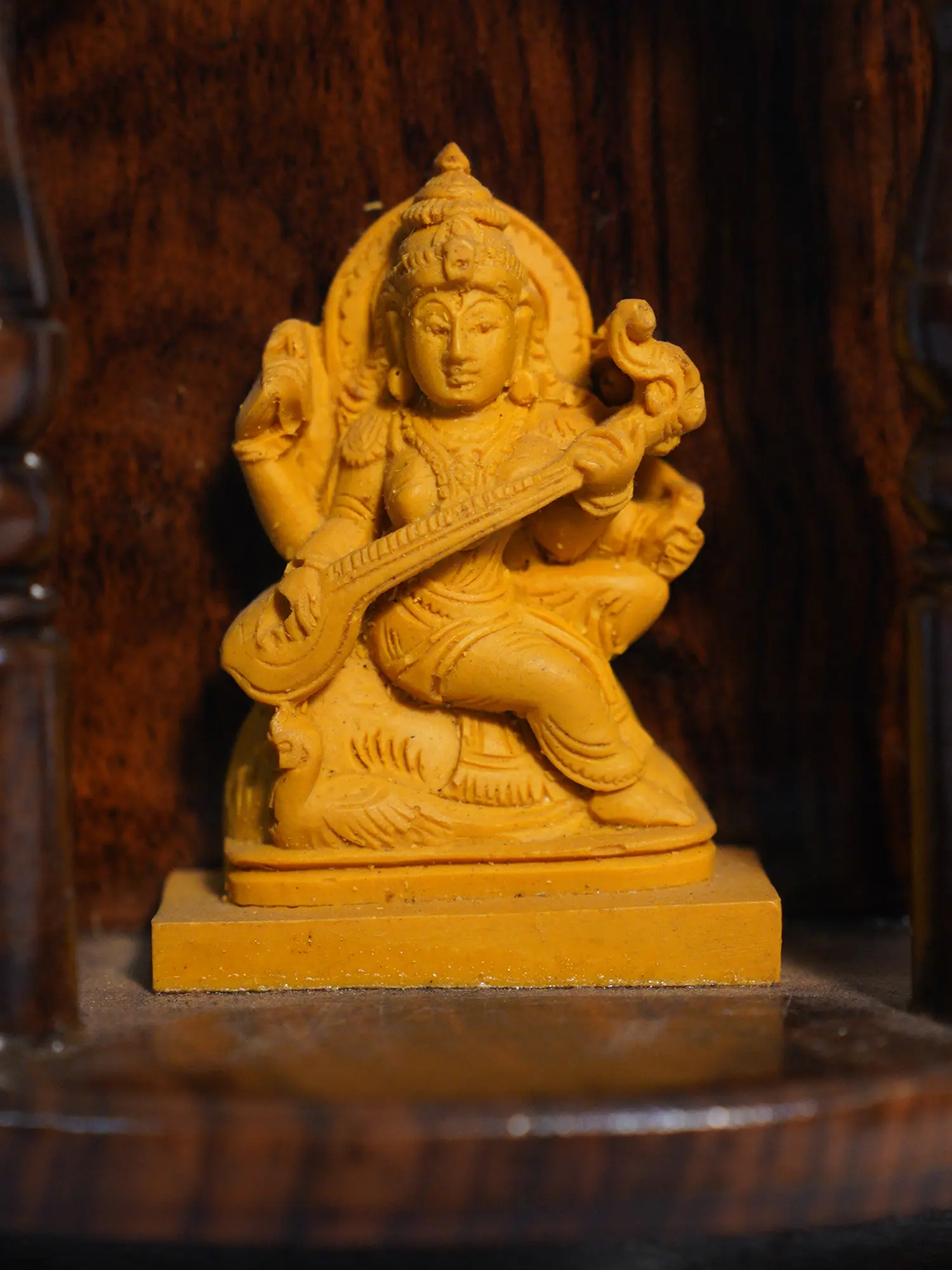 54" Wood Carved Lakshmi Ganesha Saraswati Puja Temple