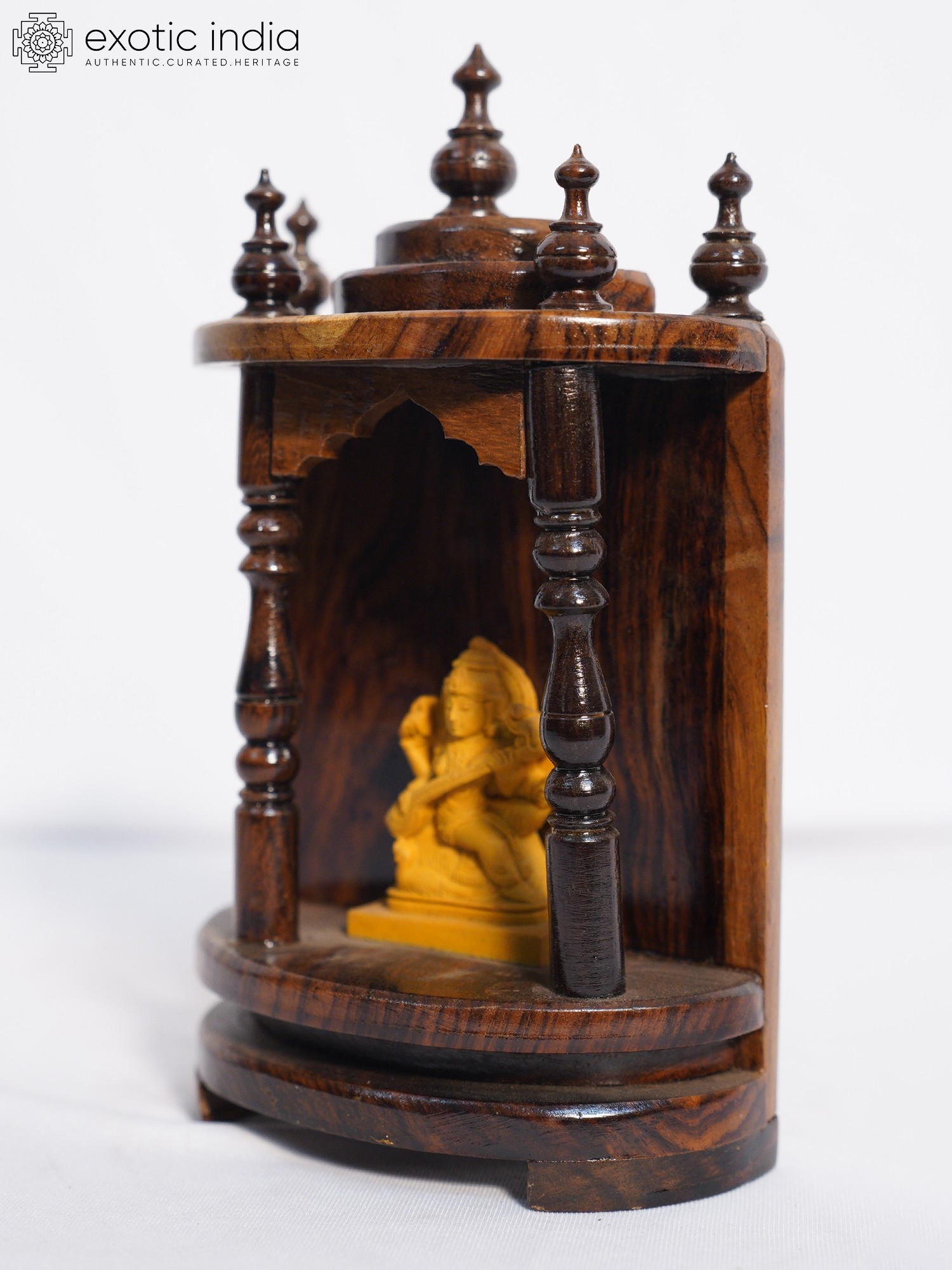 Each temple is brought to life through the skilled hands of artisans, showcasing the beauty and durability of rosewood. The natural grain patterns of the wood are celebrated, creating a unique and captivating piece that exudes warmth and character. The deep, rich tones of the rosewood lend an air of sophistication to your home decor, while the smooth finish reflects the careful attention to detail that goes into every piece. The intricate carvings add a touch of grace and charm, creating a focal point that draws the eye and inspires contemplation.
