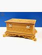 The craftsmanship extends beyond the lid. The sides of the box are intricately detailed with a repeating geometric pattern, adding another layer of visual interest and reinforcing the overall artisanal quality. The box is fitted with sturdy, polished brass clasps, ensuring it stays securely closed and adding a gleam of metallic contrast against the warm wood. Supported by elegantly carved paw feet, this box stands with a regal presence, hinting at its sophisticated origins and enduring appeal. This decorative box is more than just a storage solution; it's an heirloom in the making, designed to bring beauty and organization to your life for years to come.