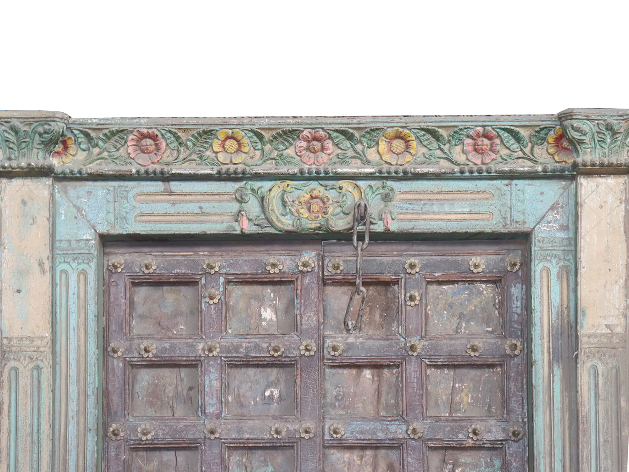 With a majestic and authentic touch, welcome your peers with the Large Wooden Entrance Door crafted finely from the outskirts of Jodhpur. This vintage Indian door exudes grandeur and sophistication with its intricate detailing of florals and geometrical figures, including captivating rectangles. With its antique allure and ethnic charm, this door serves as a testament to the rich cultural heritage of India, inviting you to step into a realm where timeless craftsmanship meets architectural excellence.