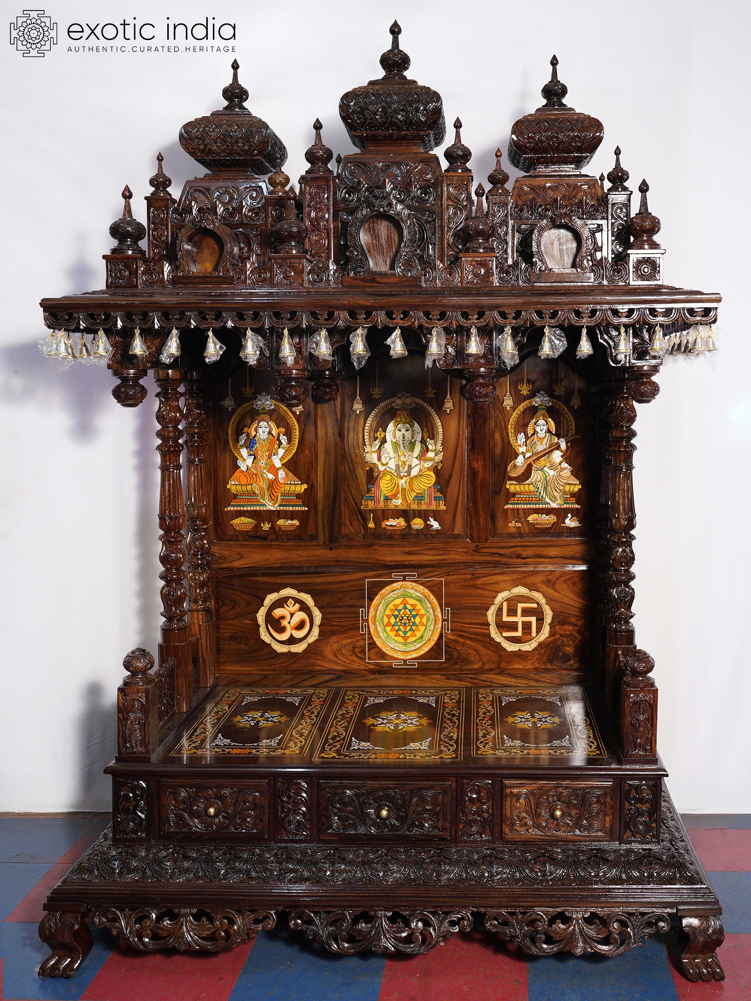 70" Designer Huge Temple in Wood with Lord Ganesha Inlay