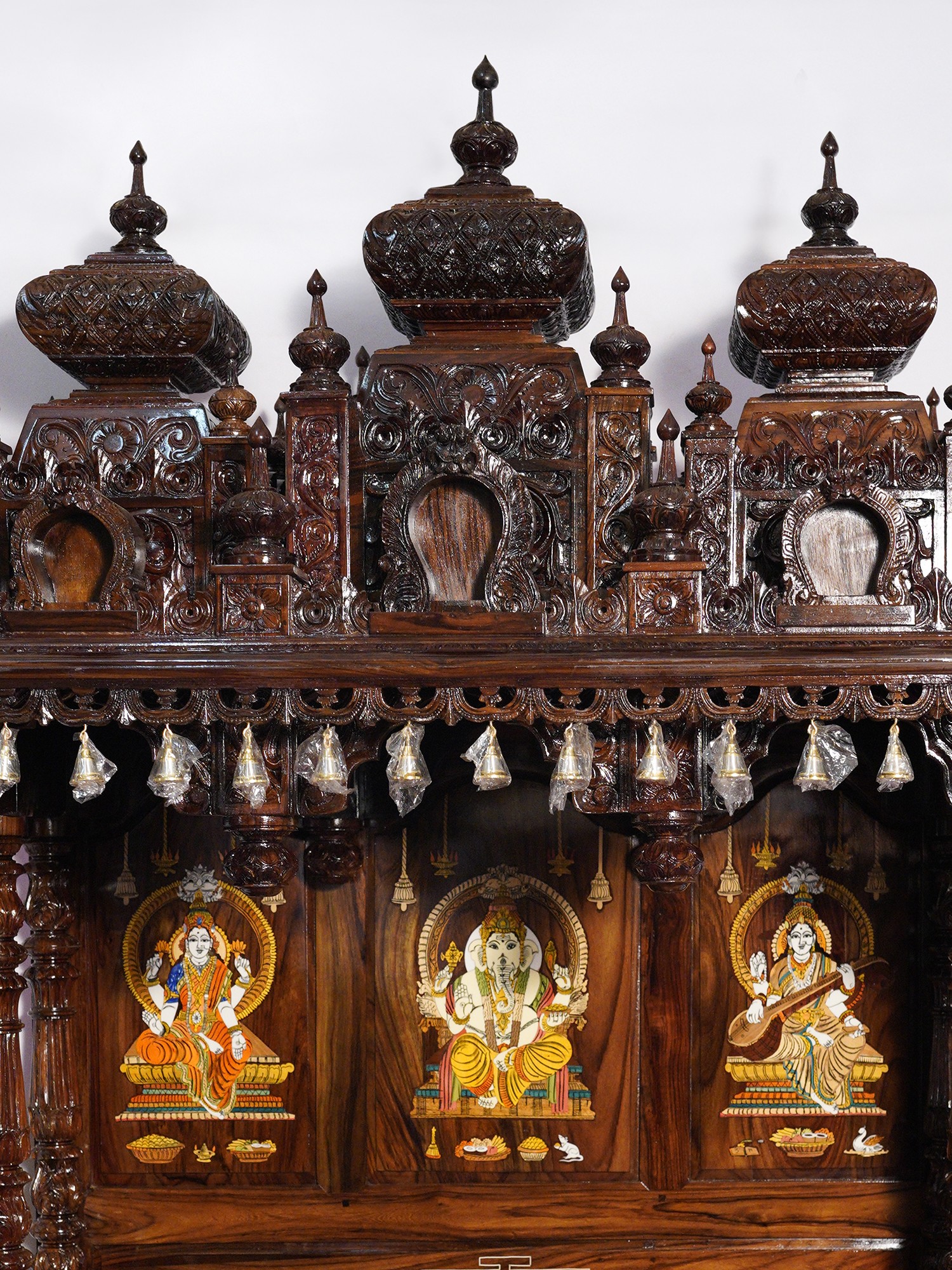 Each element of this temple speaks to the dedication of the artisans who created it. The rich, warm tones of the rosewood beautifully complement the intricate carvings that adorn its surface. The careful sculpting showcases a deep understanding of traditional designs and elevates the piece to a work of art. From the base to the ornate top, every detail has been considered to create a harmonious and inspiring structure.