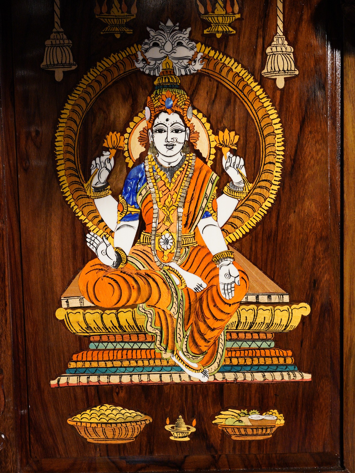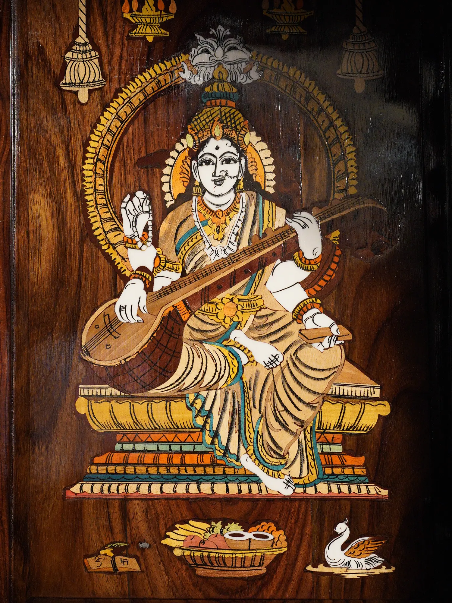 54" Wood Carved Lakshmi Ganesha Saraswati Puja Temple
