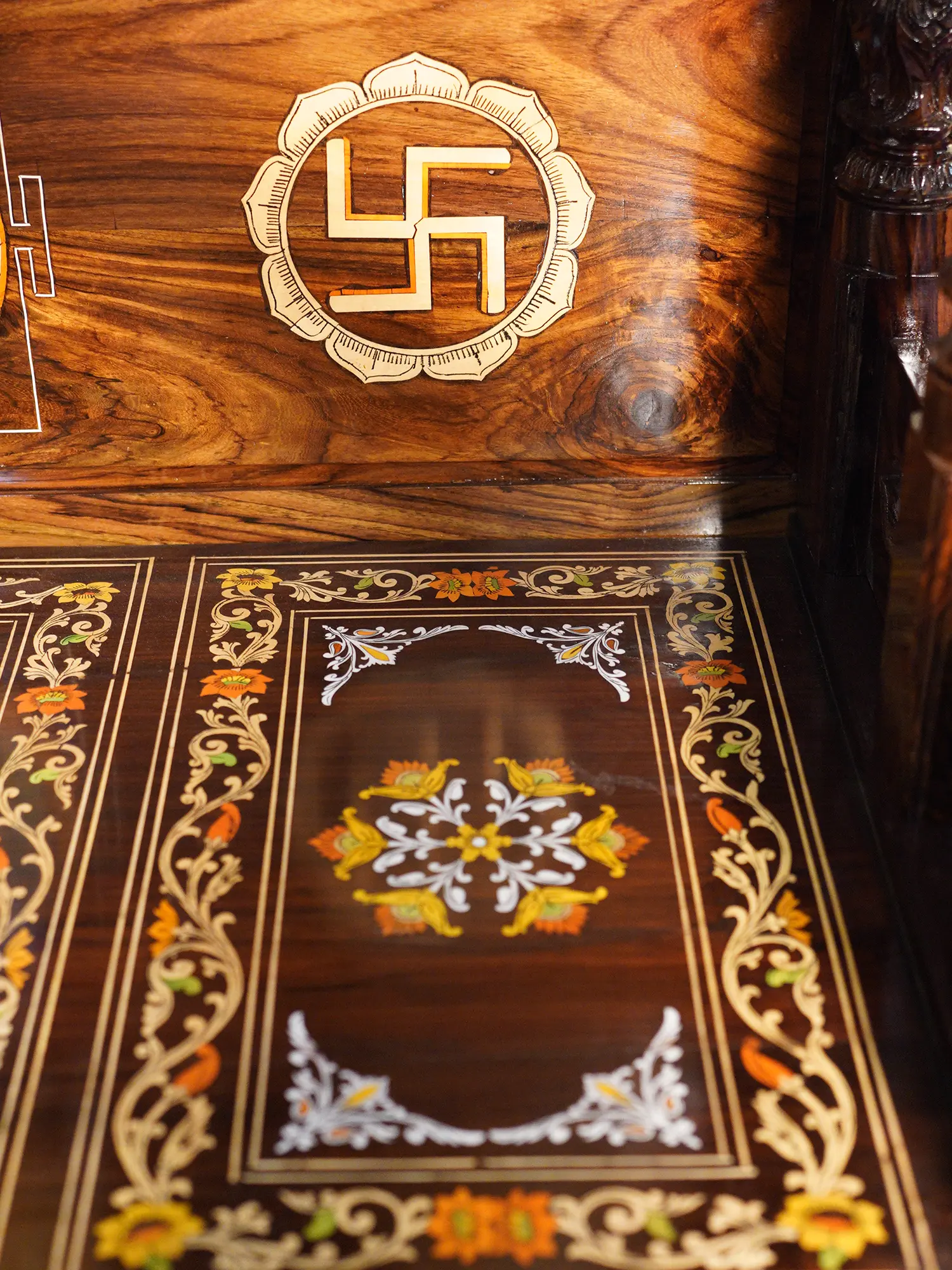 This exquisite temple is a testament to skilled artistry and devotion, designed to bring a sense of peace and reverence to your home. Crafted with meticulous attention to detail, this temple provides a dedicated space for prayer, meditation, and connecting with the divine.