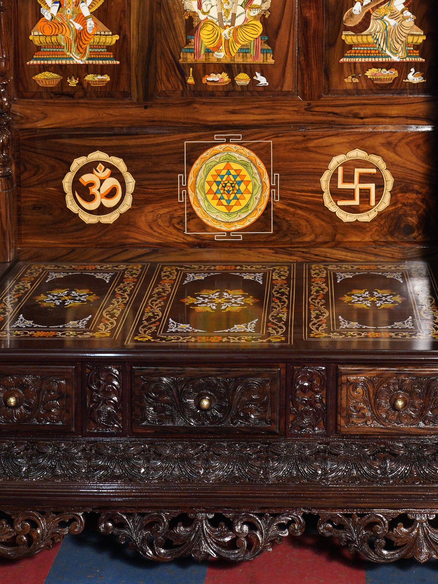 84" Super Large Size Designer Puja Temple with Multiple Drawers | Wood and Marble