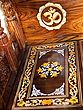 The temple features depictions of Lakshmi, Ganesha, and Saraswati, each revered for their unique attributes and blessings. Lakshmi, the goddess of wealth and prosperity, bestows abundance and good fortune. Ganesha, the remover of obstacles, ensures success in all endeavors. Saraswati, the goddess of knowledge and arts, inspires creativity and wisdom. Together, they represent a powerful trinity that brings harmony and balance to your life. Beneath the trio of deities, you'll find the Om symbol, the Sri Yantra, and the Swastika. The Om resonates with the very essence of the universe and is used in prayer. The Sri Yantra is a geometric diagram that represents the cosmic creation and brings wealth. The Swastika promotes well-being, and prosperity.