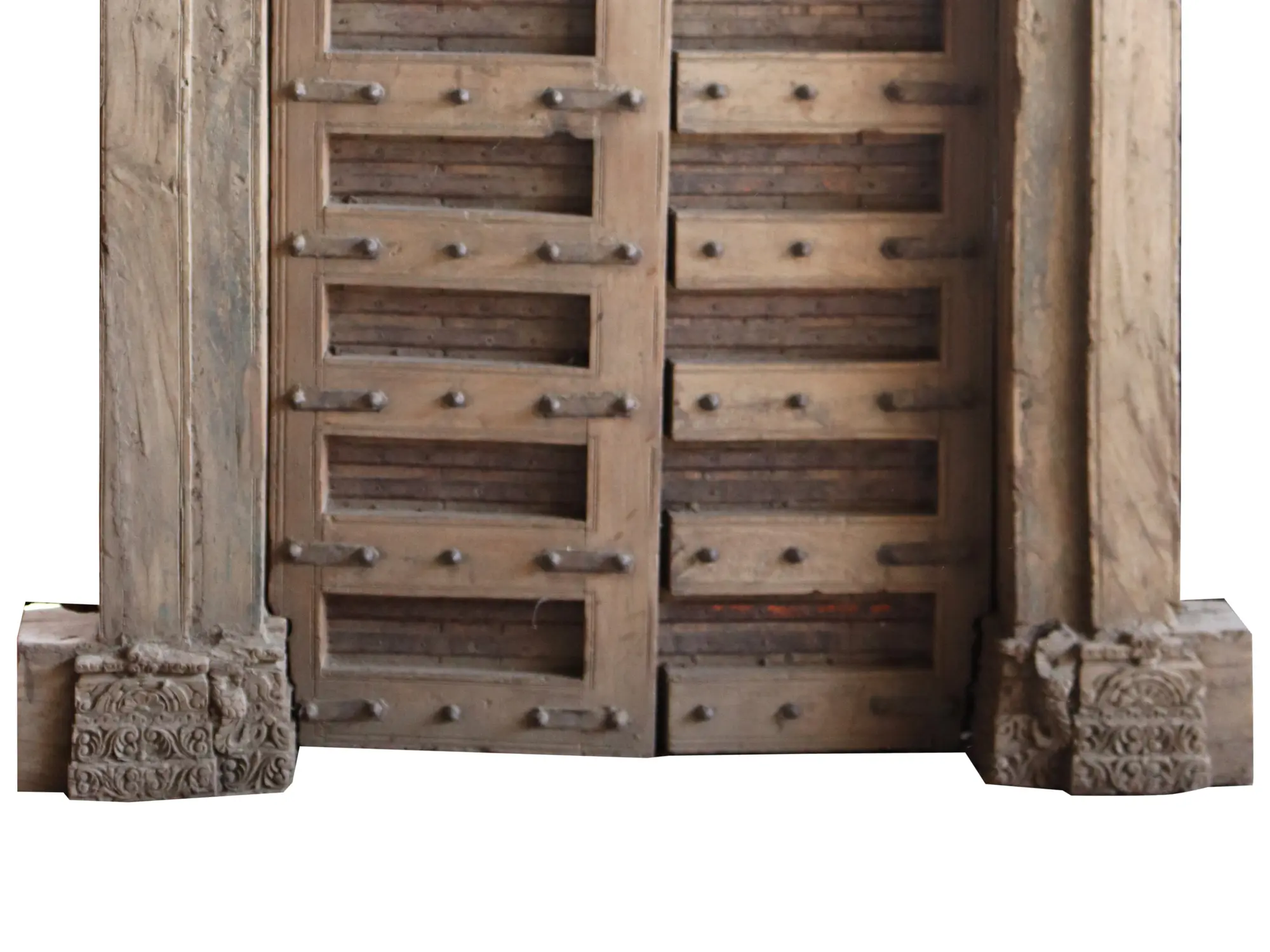 The authenticity and craftsmanship of Rajasthan are unmistakable in these exquisite Large Doors. These regal pieces, once used during the reign of kings, hold a timeless allure. The intricate carvings depict royal patterns, reminiscent of the bygone era. The doors feature spiked carvings, symbolising protection, and strength. Crafted from robust wood, they are not just aesthetically pleasing but also serve as sturdy main doors. A perfect fusion of aesthetics and ethnicity, these doors are a testament to Rajasthan's rich heritage.