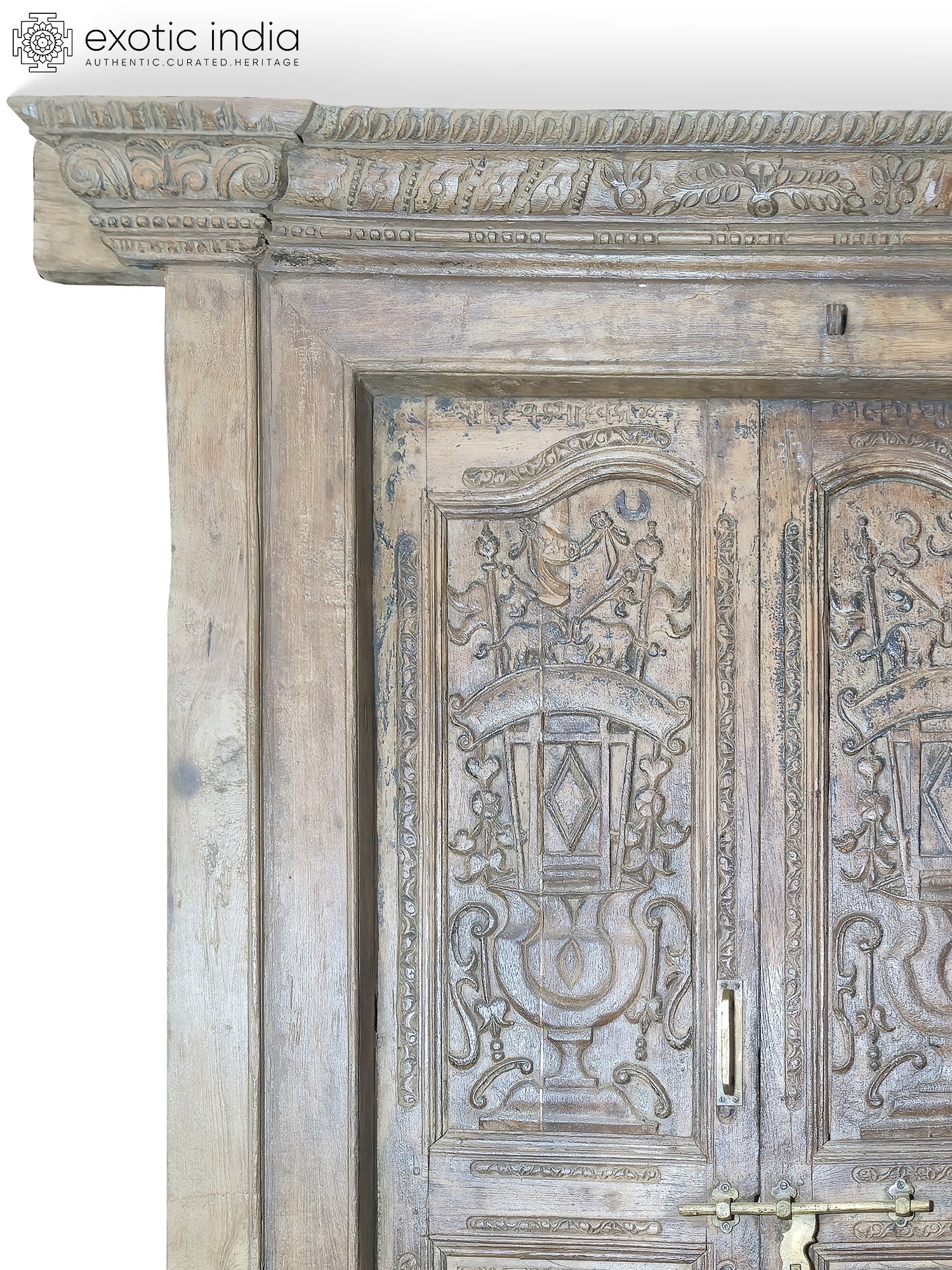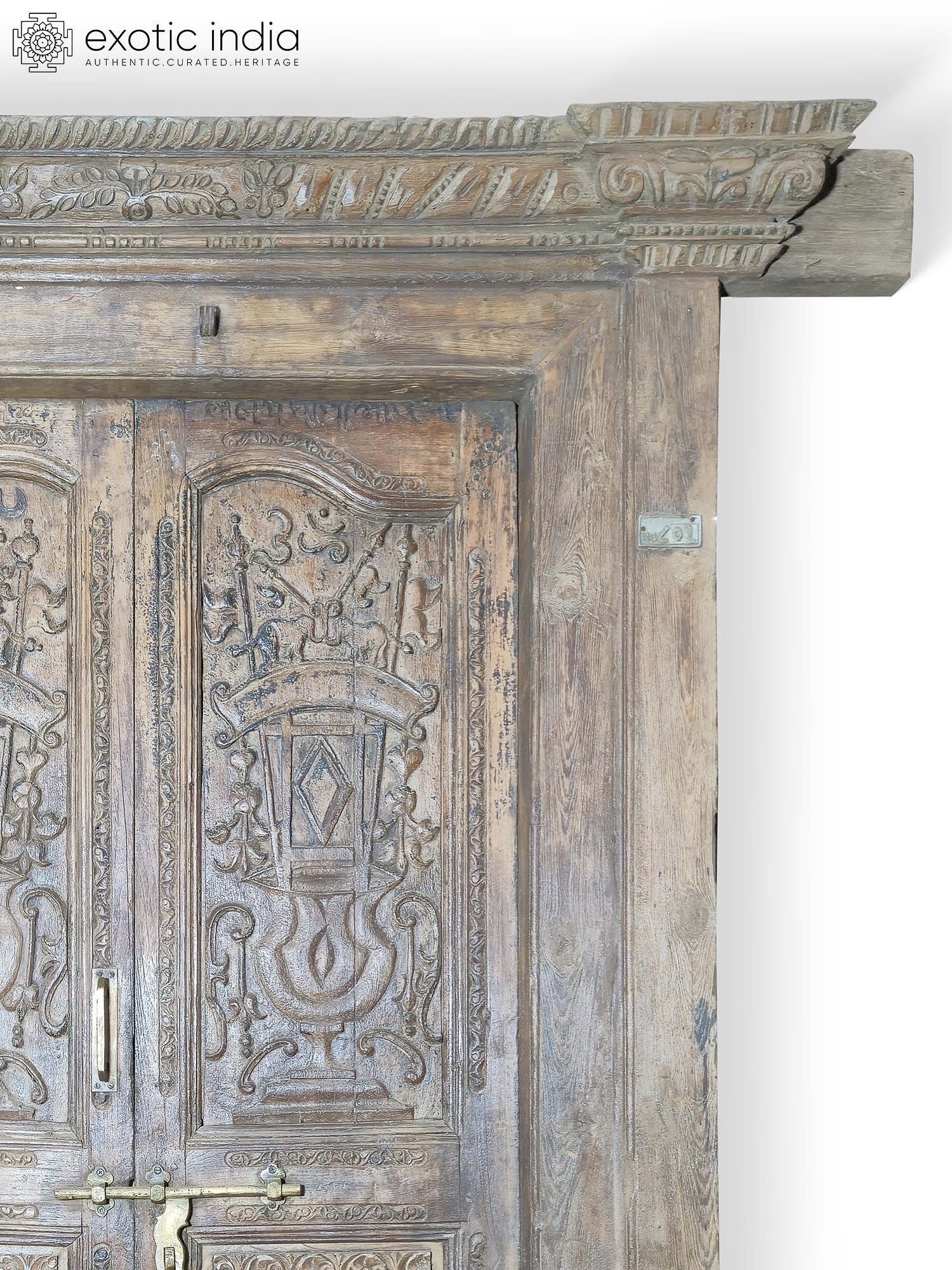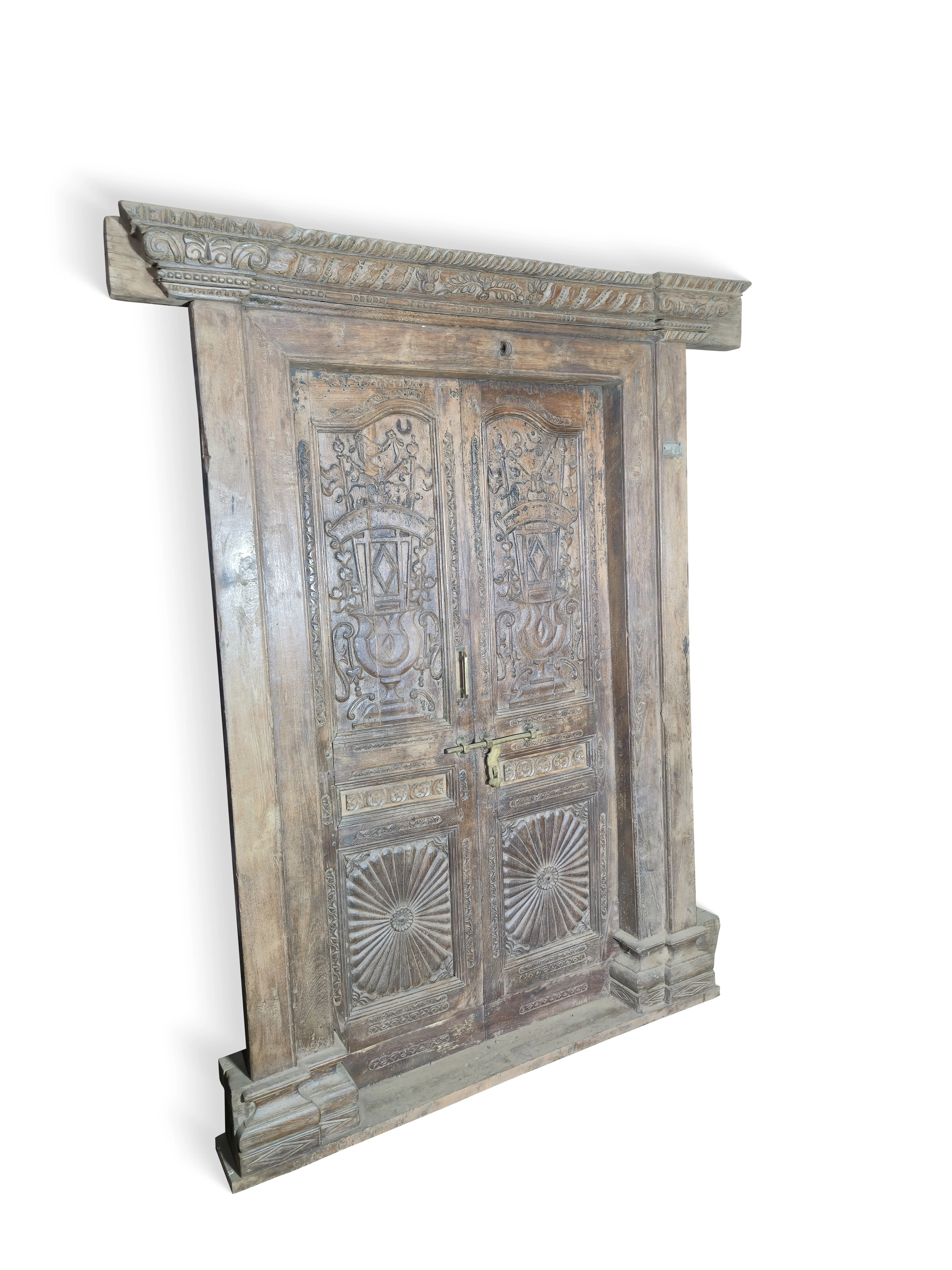 101" Large Wooden Carved Double Door with Frame | Vintage Indian Door