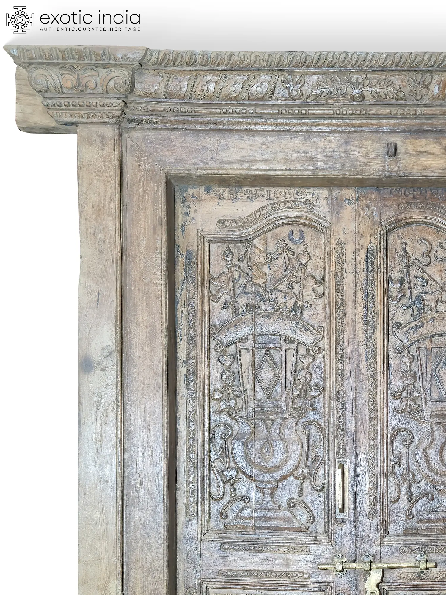 88" Large Wooden Carved Front Door with Frame | Vintage Indian Door
