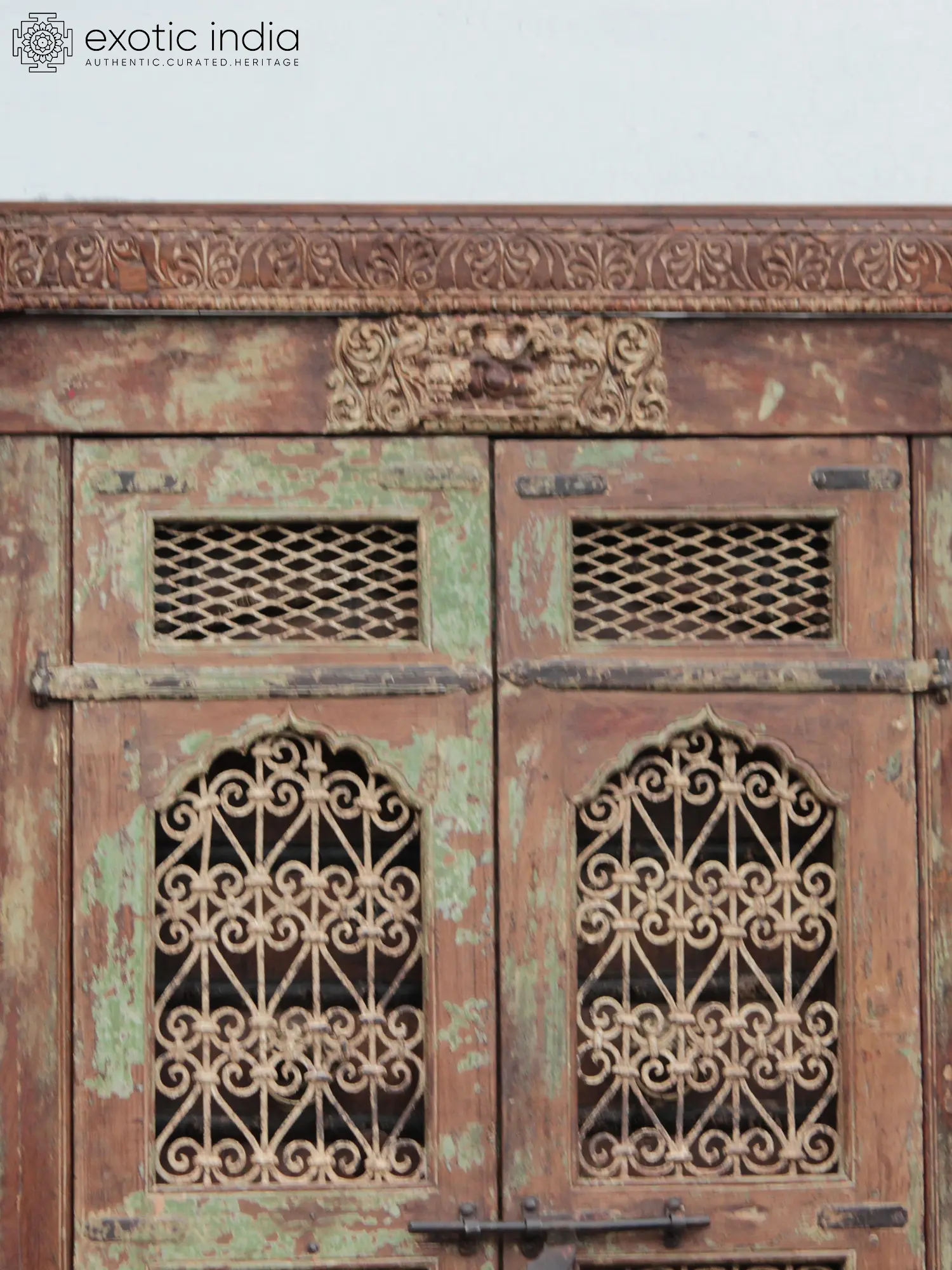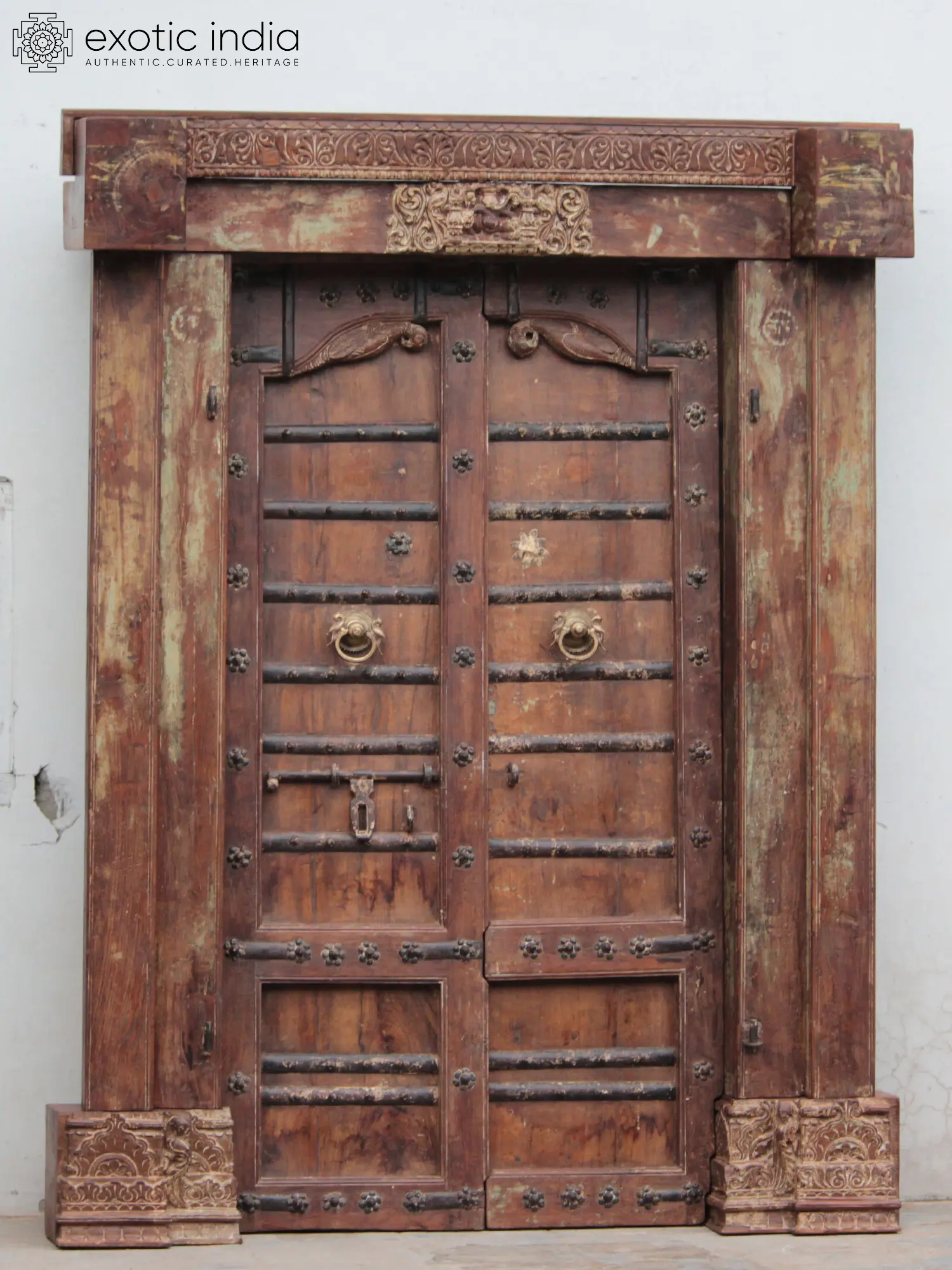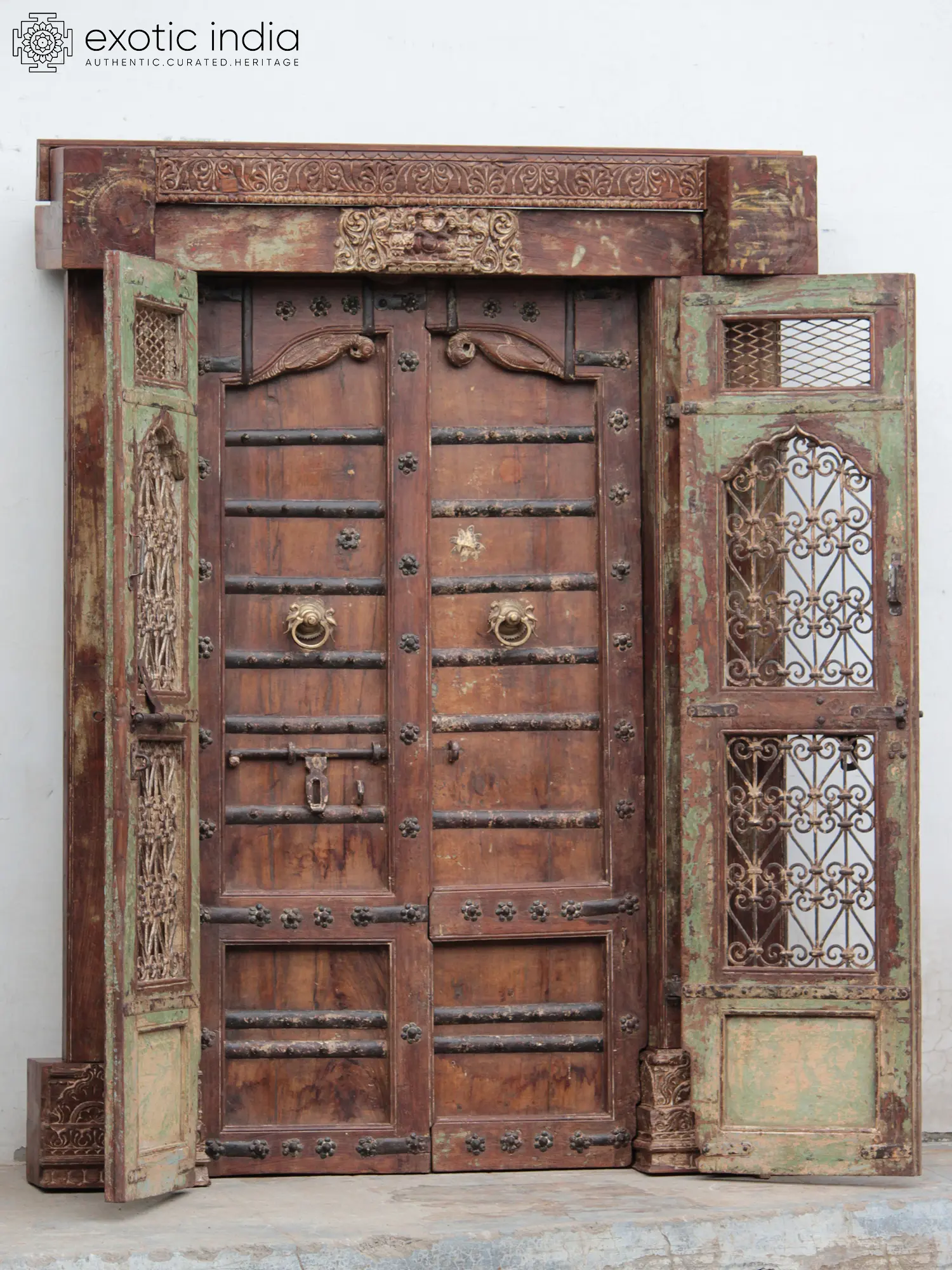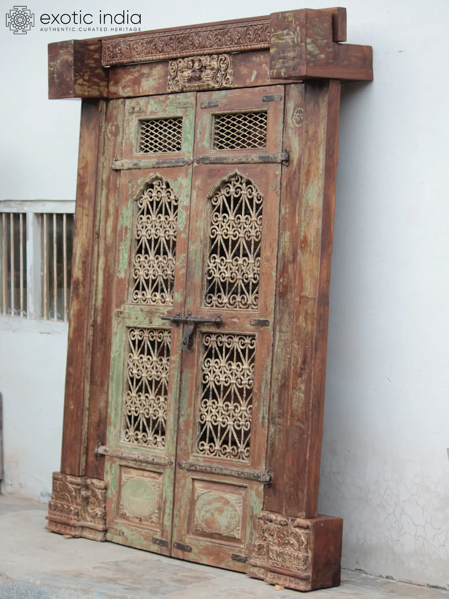 97" Vintage Style Indian Hand Carved Wood Door
