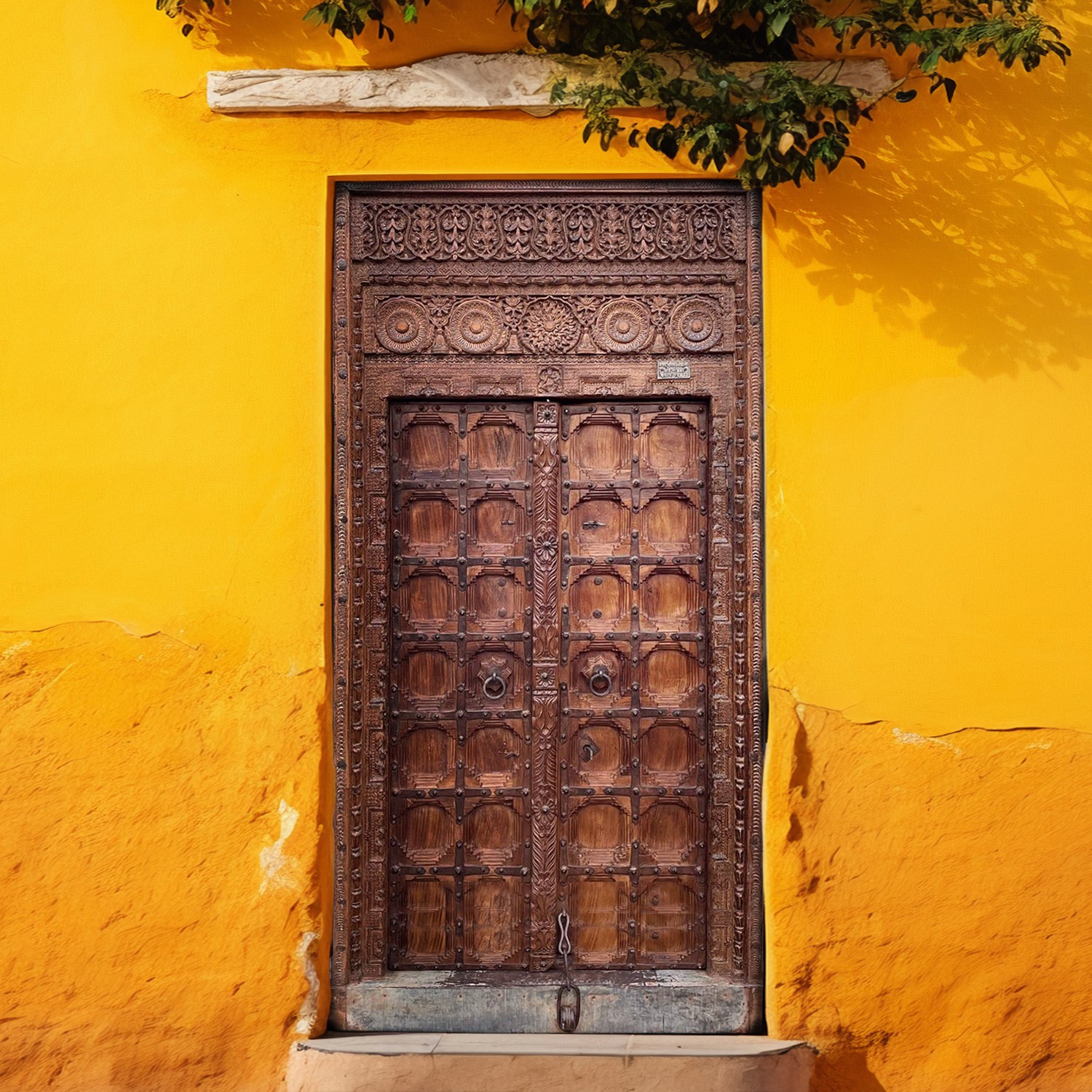 A Majestic Piece of History: The 85" Antique Indian Teakwood Door