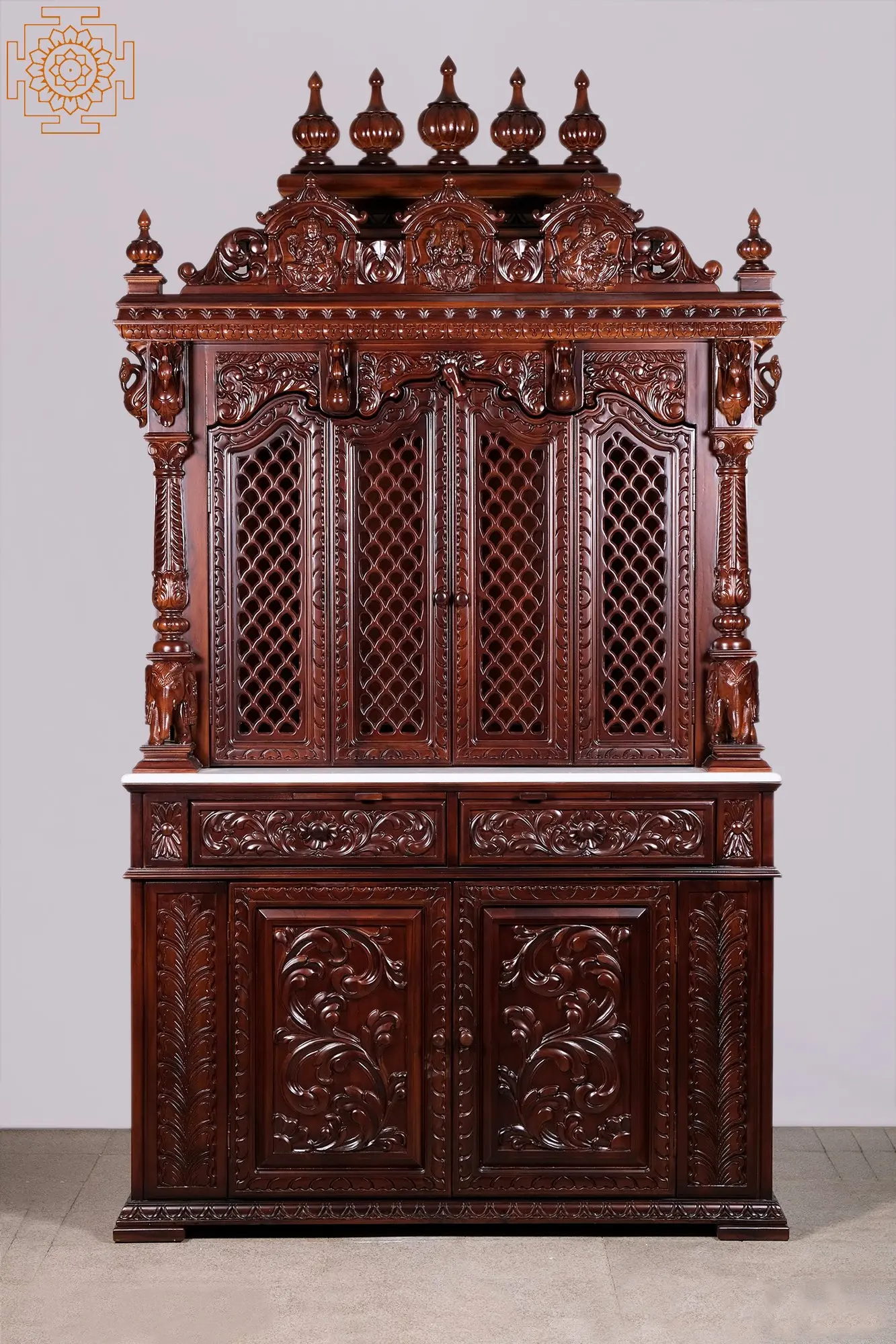 86" Large Designer Wooden Temple | Wooden Pooja Mandir | Temple With Doors & Drawers | Handmade | Made In India