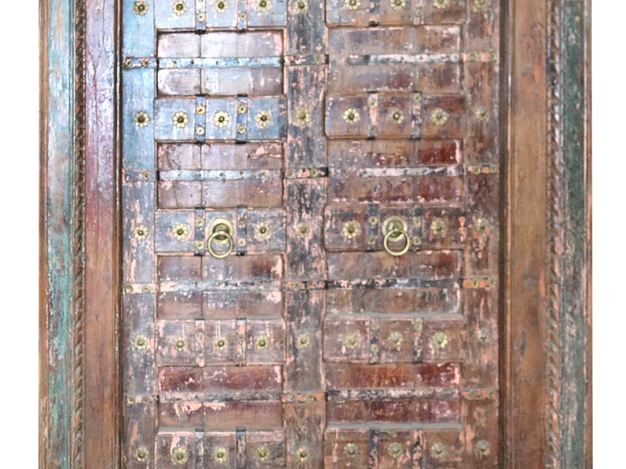 This intriguing ‘Vintage Indian Door’ is a work of meticulous craftsmanship and timeless beauty. This door, made of fine wood, honours the rich tradition of Indian architecture and design. The door's brass decoration, which has elaborate patterns and motifs drawn from ancient Indian art forms, lends the space a sense of elegance and grandeur. This door grabs attention and makes a statement in any room thanks to its large size. Its sturdy design guarantees endurance and durability, while its retro appeal lends a feeling of history and character. This door creates a distinctive and alluring entry to any interior or exterior space because it is the ideal fusion of artistic brilliance and practical design.