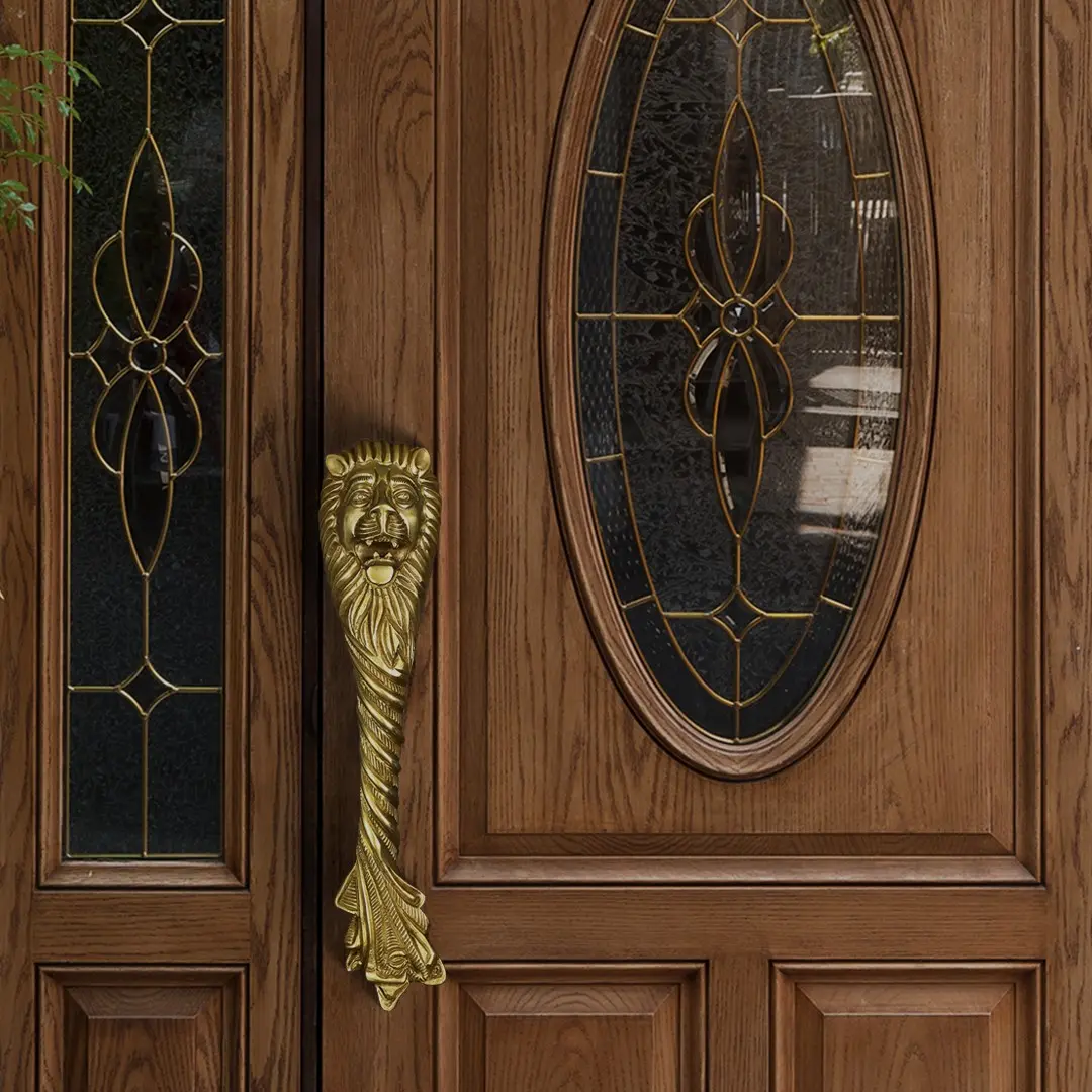 The Brass Lion Face Door Handle is an entryway to luxury. With the regal lion's face adorning your door, every entrance and exit becomes a statement of strength and nobility. Handcrafted to perfection, this door handle offers both functionality and artistry. Its brass finish ensures durability, while its elegant design speaks of opulence. Enhance your living space with the grace of lions and experience the luxury of this door handle, where each touch is an invitation to a world of sophistication.