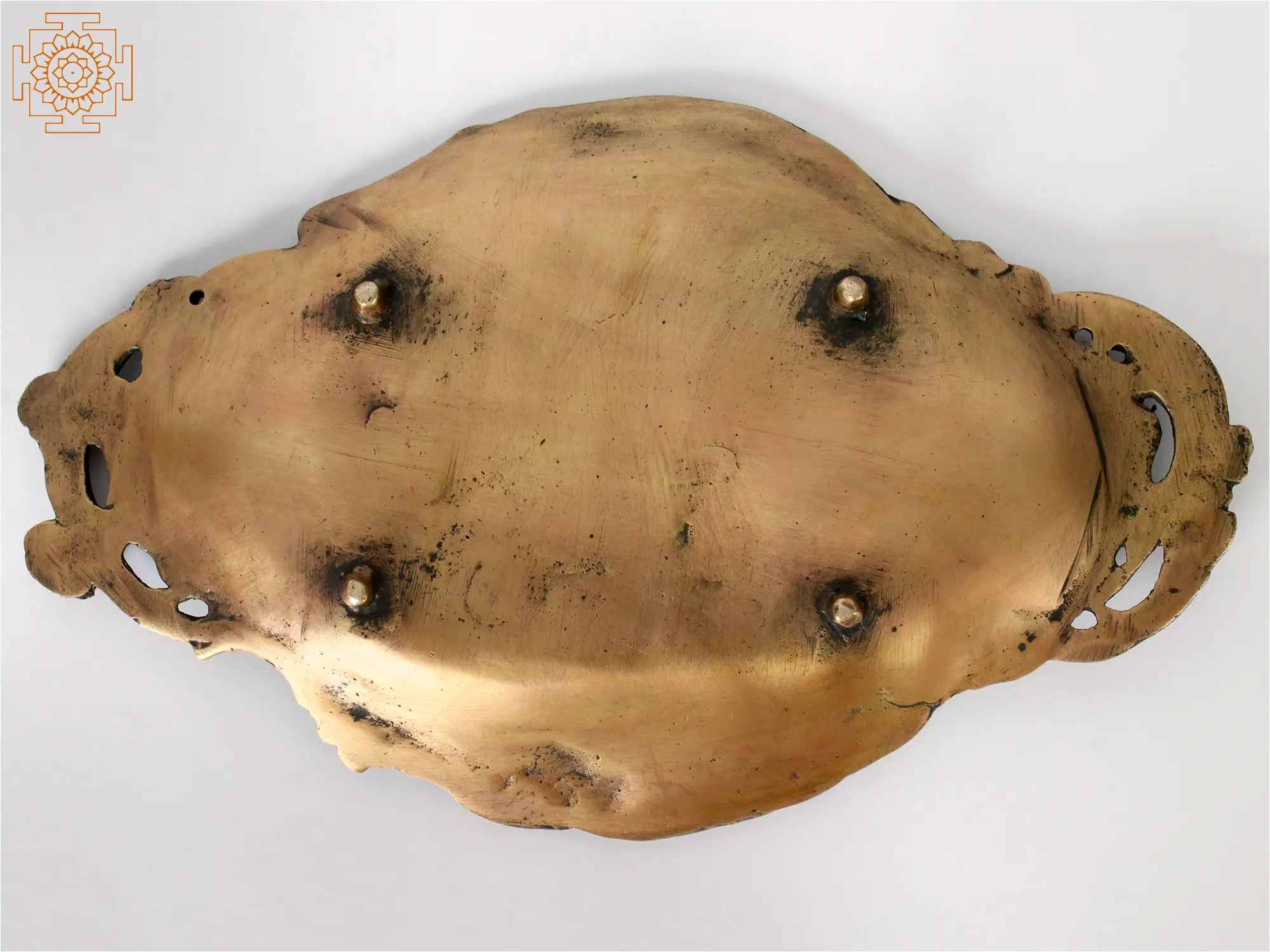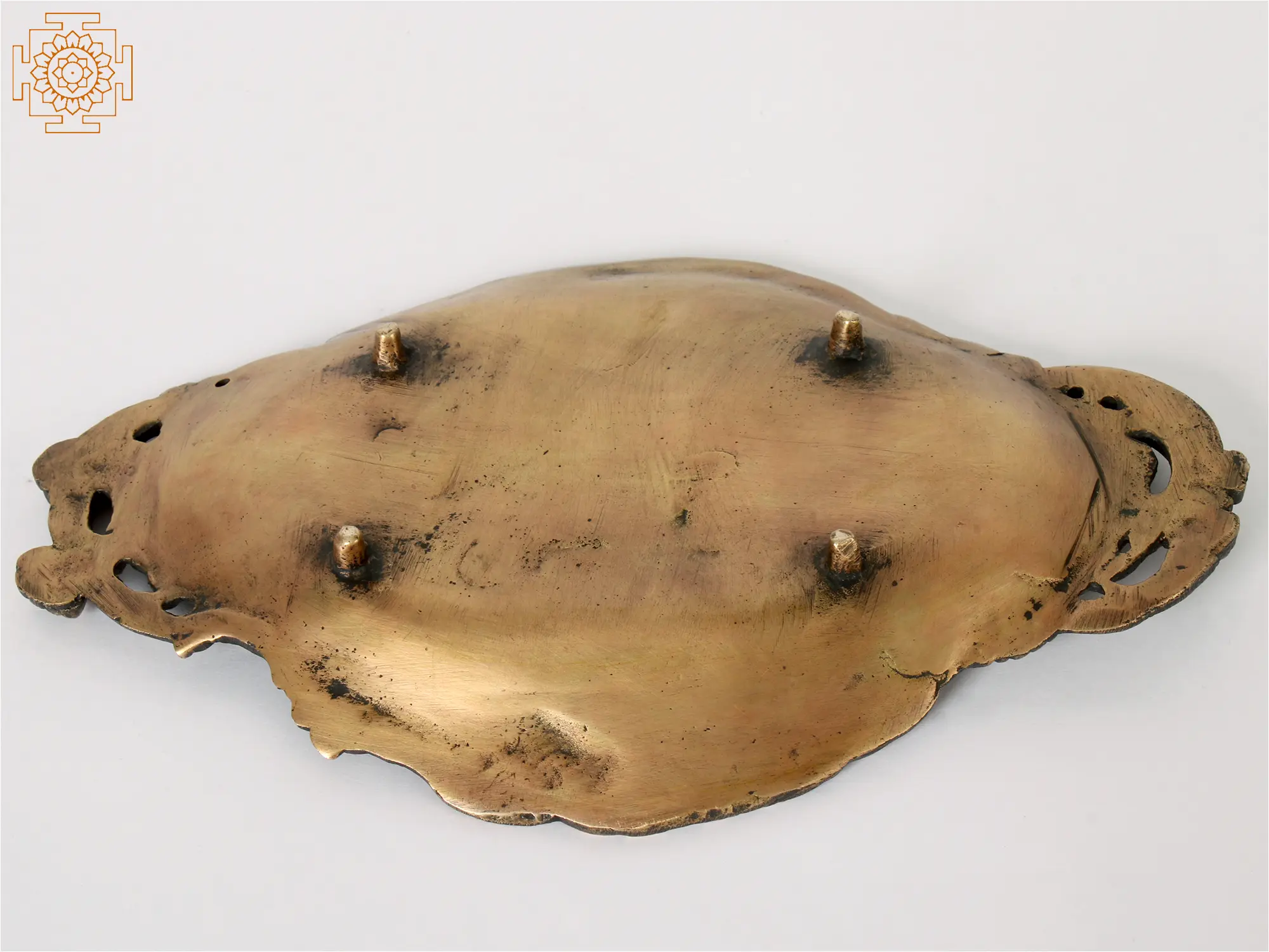 The four stands below the tray provide stability and an added layer of detailing. This Designer Brass Tray becomes a centerpiece, showcasing craftsmanship from a bygone era, and contributes to a refined and aesthetically pleasing table setting, combining functionality with artistic allure.