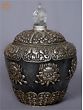 Beyond its aesthetic brilliance, this vessel serves a practical purpose, offering a unique and elegant solution for storing your cherished belongings. Whether you choose to keep sacred items, precious jewelry, or simply everyday treasures within its embrace, its substantial form and secure lid ensure both preservation and accessibility. The smooth, cool feel of the metal and the tactile nature of the detailed carvings invite a connection to the past and a sense of reverence for the skills involved in its creation. ––––––––––––––––––